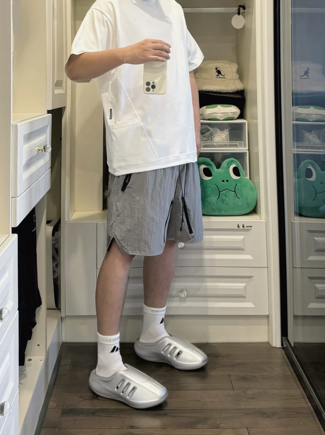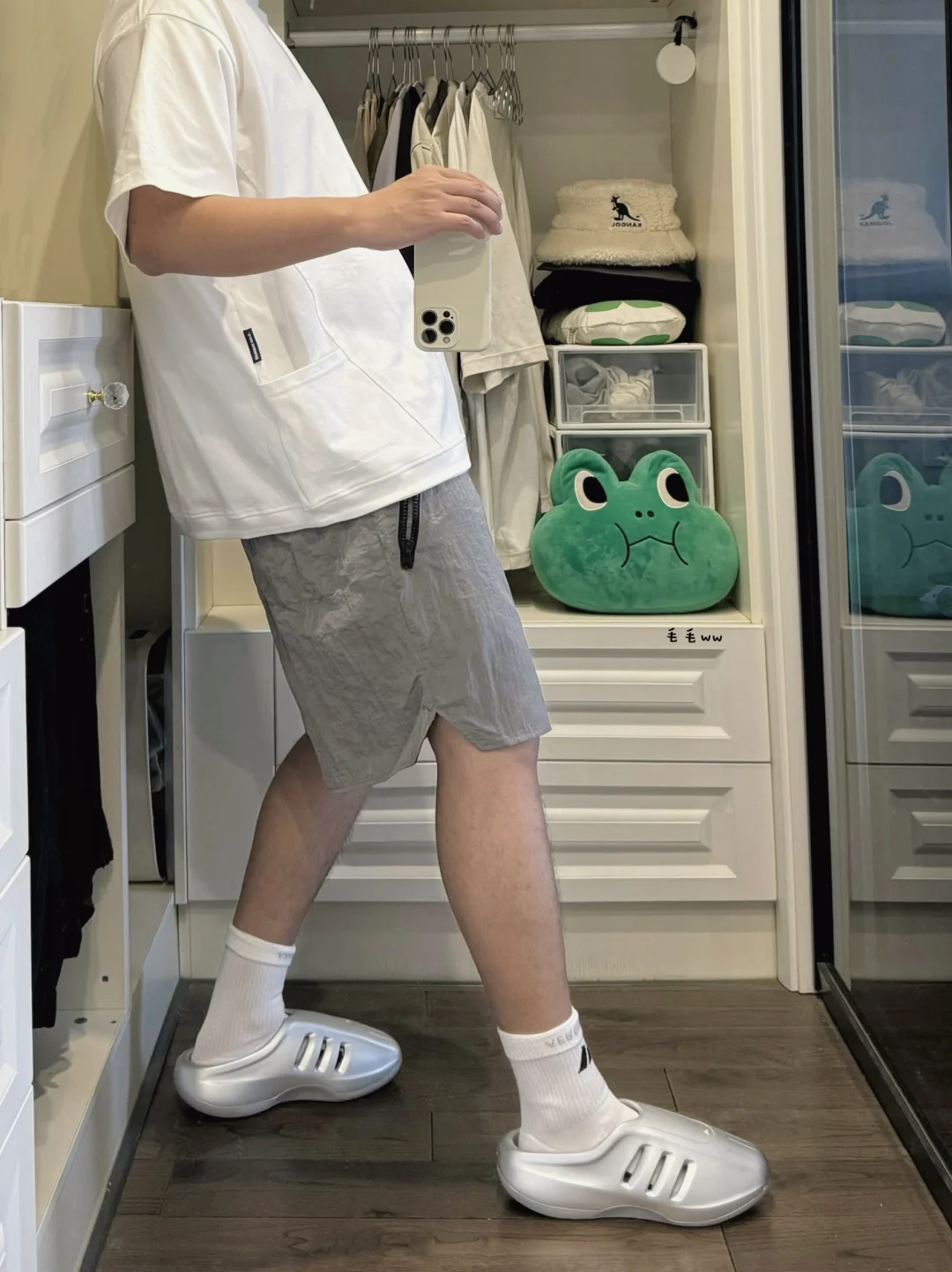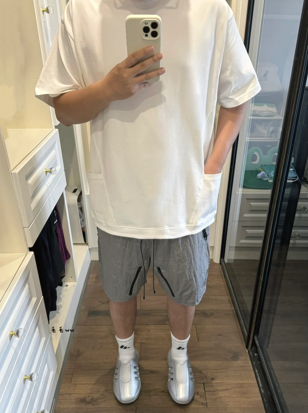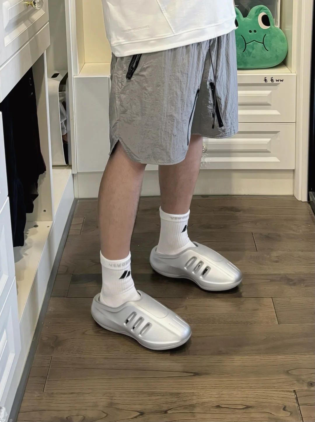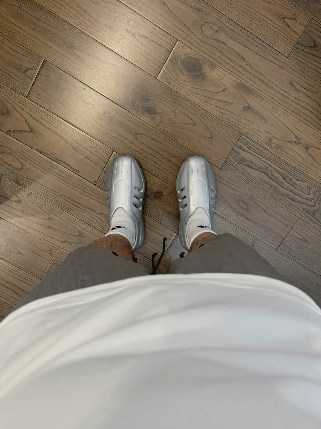 -电镀银自带未来感的配色,搭配科技感的鞋型,赛博朋克一拍即合 . —————— . 👕Expensive Taste // M . 🩳Expensive Taste // M . 👟Adidas adiFOM / IIInfinity Mule // 43 . —————— . ✏️本人178cm75kg 球鞋尺码265mm(正常EU42) . 💭以上均为我个人观点,不喜勿喷,欢迎讨论。
