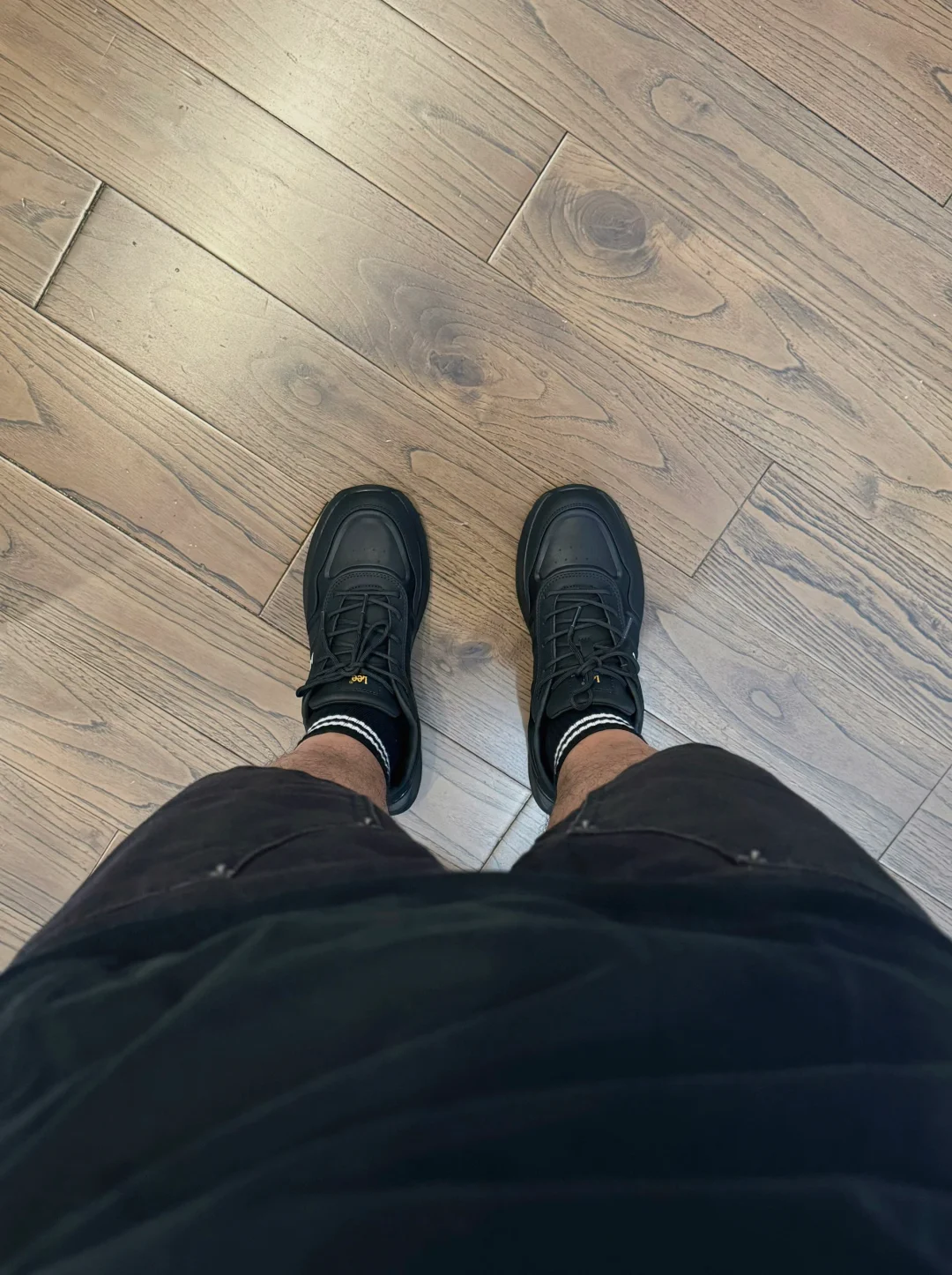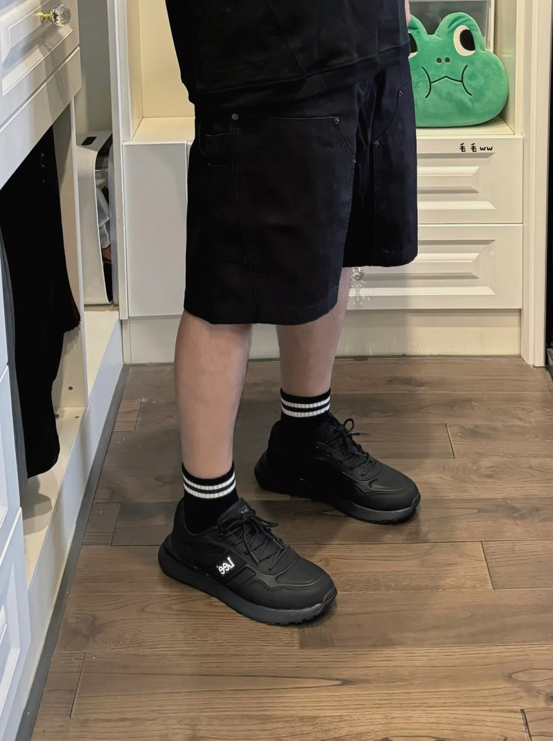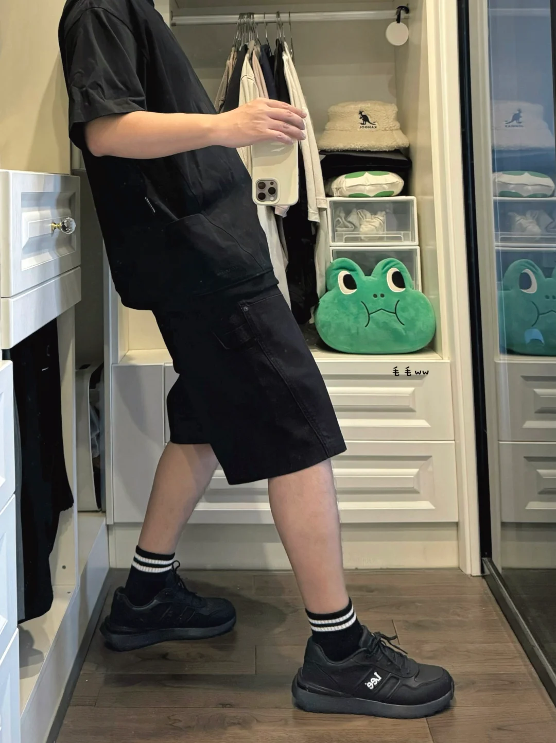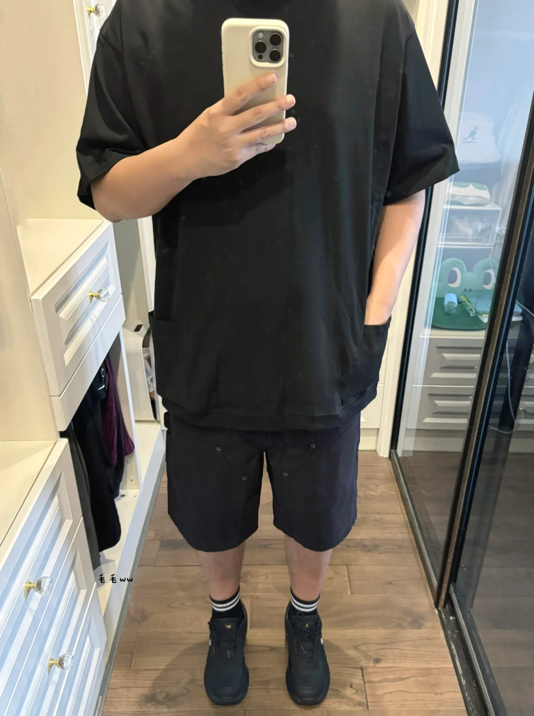 -All Black,全黑色系是真显瘦哇 -插兜体恤&牛仔短裤,气候正合适 -休闲鞋搭配条纹短袜,增加层次感 . —————— . 👕Expensive Taste // M . 🩳Teenie Weenie Men // XL . 👟Lee / 黑色休闲鞋 // 43 . —————— . ✏️本人178cm75kg 球鞋尺码265mm(正常EU42) . 💭以上均为我个人观点,不喜勿喷,欢迎讨论