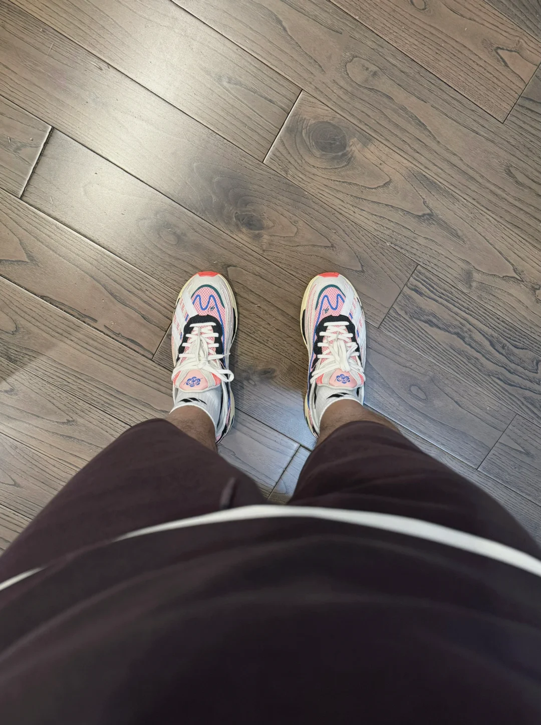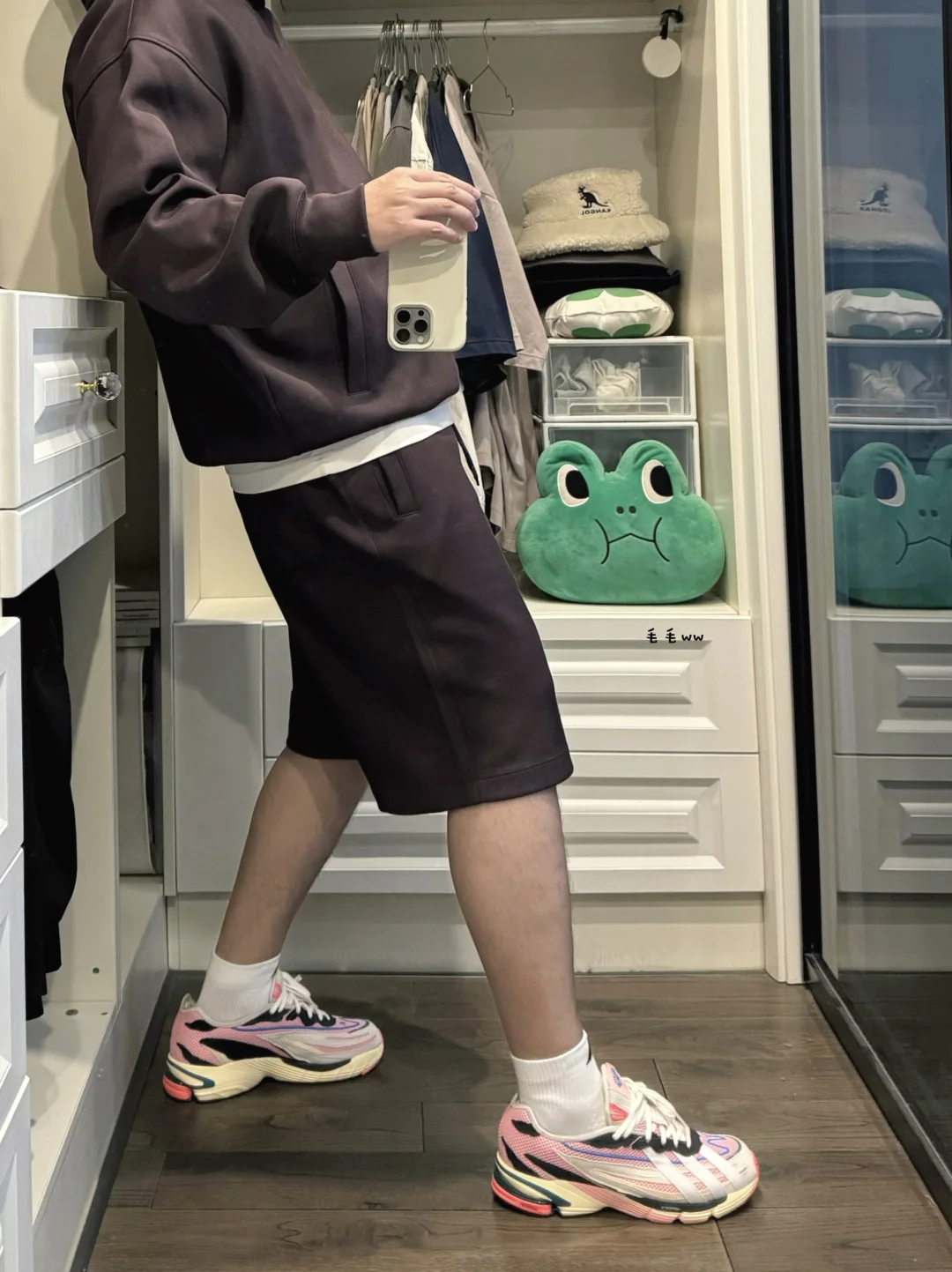 护膝不放裤子里面,放裤子外面,这绝对的人才,看不懂这是怎么一个穿法?还有一点