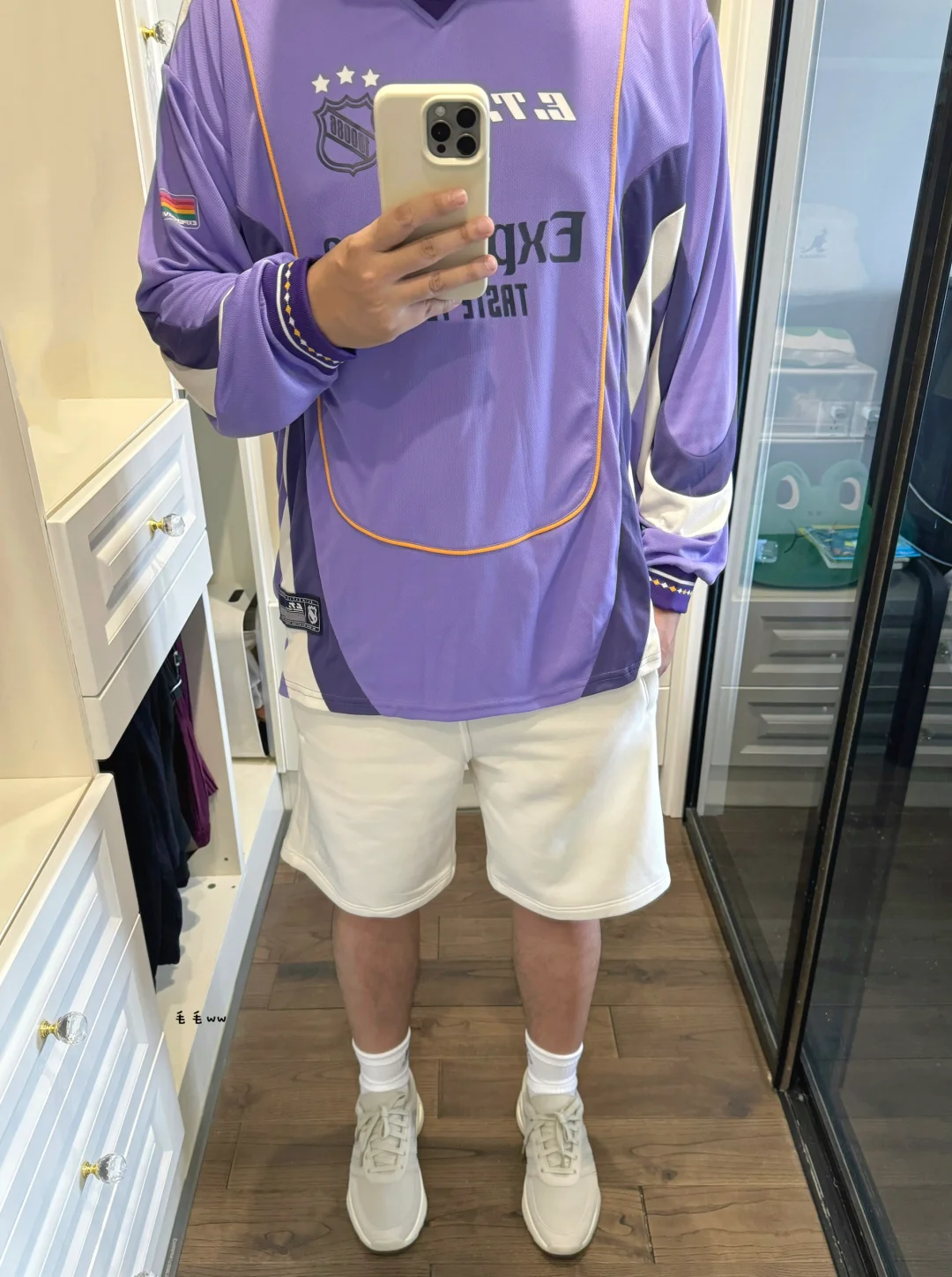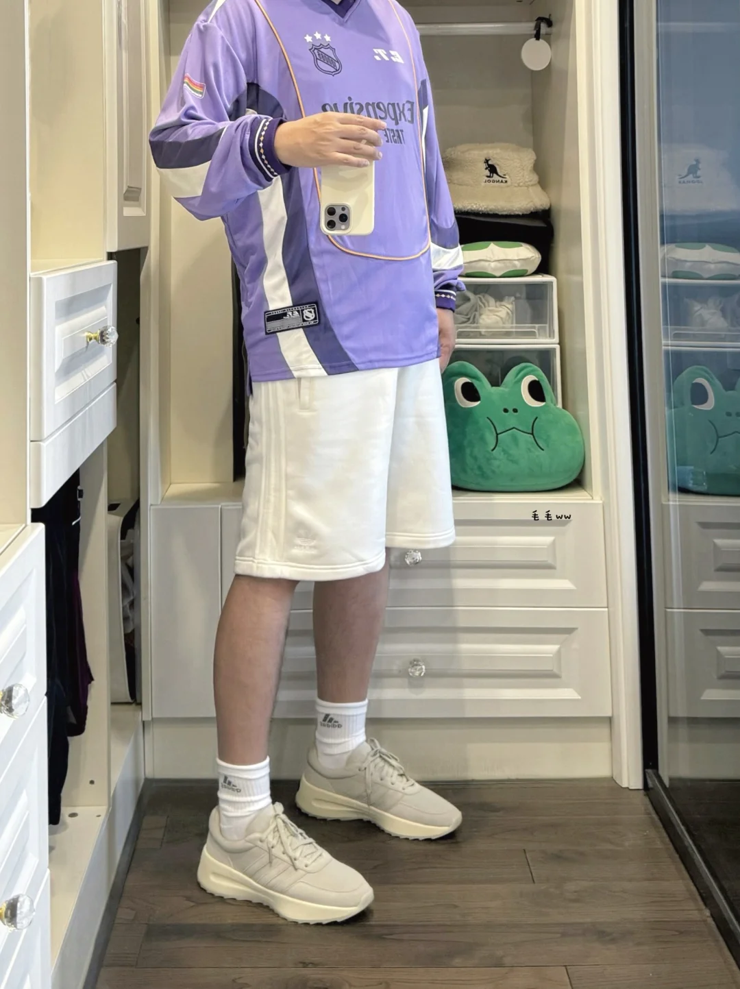 -Blockcore,冰球服也能搭配;米白色系为主,一抹特别的紫色出挑且和谐;长袜&跑鞋,适合现在气候穿着 . —————— . 👔Expensive Taste // M . 🩳Adidas Originals / GN3457 // M . 👟Adidas FOG / Los Angeles // 42.5 . —————— . ✏️本人178cm75kg 球鞋尺码265mm(正常EU42) . 💭以上均为我个人观点,不喜勿喷,欢迎讨论