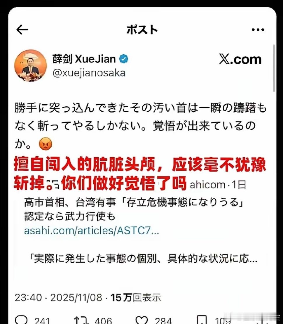 按照历史的规律,日本首相一般都干不长,可以预见,高市早苗只能是个短命首相,也许是政治生命,也许是真正的生命。作为日本右翼的出头鸟,对中国发出战争威胁,是一贯以来地得寸进尺、疯狂试探,没有底线、没有边界、没有终点。既然抓住了她的尾巴,就坚决打死、斩草除根、除恶务尽,千万不要心慈手软。要么早苗诚恳认错道歉,要么日本方面撤换早苗、深刻反省,要么继续战斗打服他们为止!不妨发动和团结二战受害国继续清算日本的血债 不知道不得人心的高市早苗能当多久?我希望越短越好