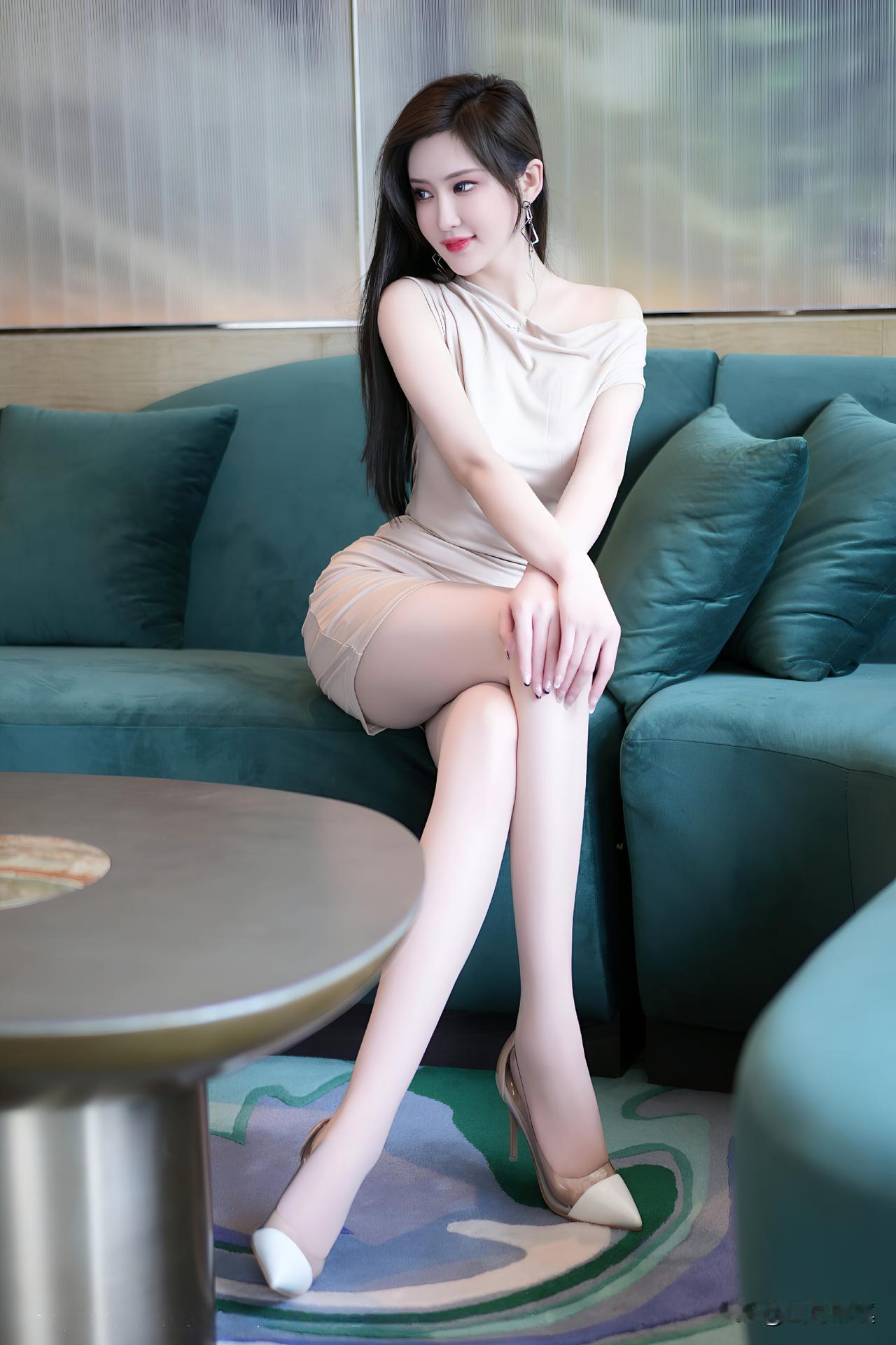 奶黄纱袖兜住窗畔的星,橄榄裙角缠过腿弯的温——她指尖轻压褶皱,是夜城里,半盏摇荡