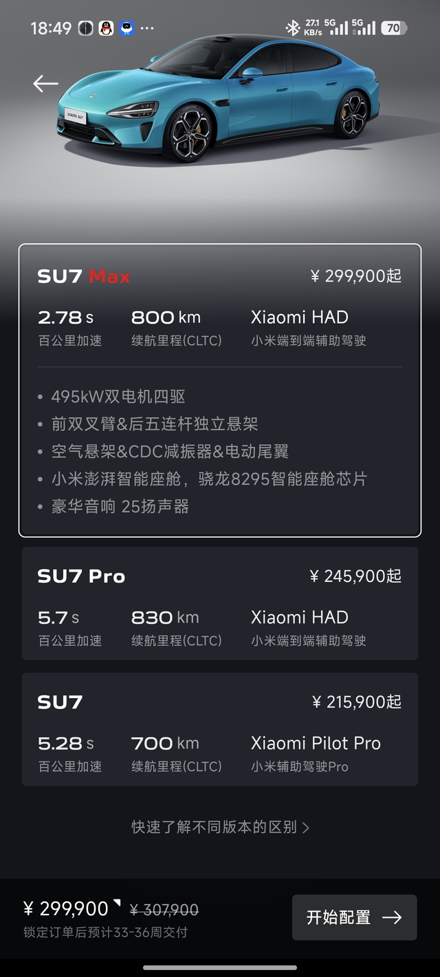你觉得被小米su7背刺了吗? 第一,小米SU7还没有改款,也就没有更新过设备及价格,现在购买的车价仍然为21.59/24.59/29.99万元,所以价格上没有背刺。 第二,首发权益:就创始版而言,特殊的就是碳纤维后视镜,后续也没有开启选配以及赠送;还有就是首发赠送的价值6000元的25个扬声器的豪华音箱以及2000元的车载智能冰箱,后续虽然一直可以选配,但也没有再免费赠送。 所以首发权益上也没有被背刺。 第三,24年、25年开启的秋季、冬季、春季免费车辆检测,在今年夏季也没有再免费开启,活动期间还赠送过马克杯、加过免费玻璃水等等,所以这个也不算背刺吧? 第四,在小米YU7上更新了一些功能,比如无麦K歌功能、超级任务功能,听先锋团的车友发视频也已经开始推送了。 第五,NOA,标准版的高速NOA没有特别大的区别,但是Pro版与Max版的NOA倒是大更新,所以这个也不能算背刺吧。