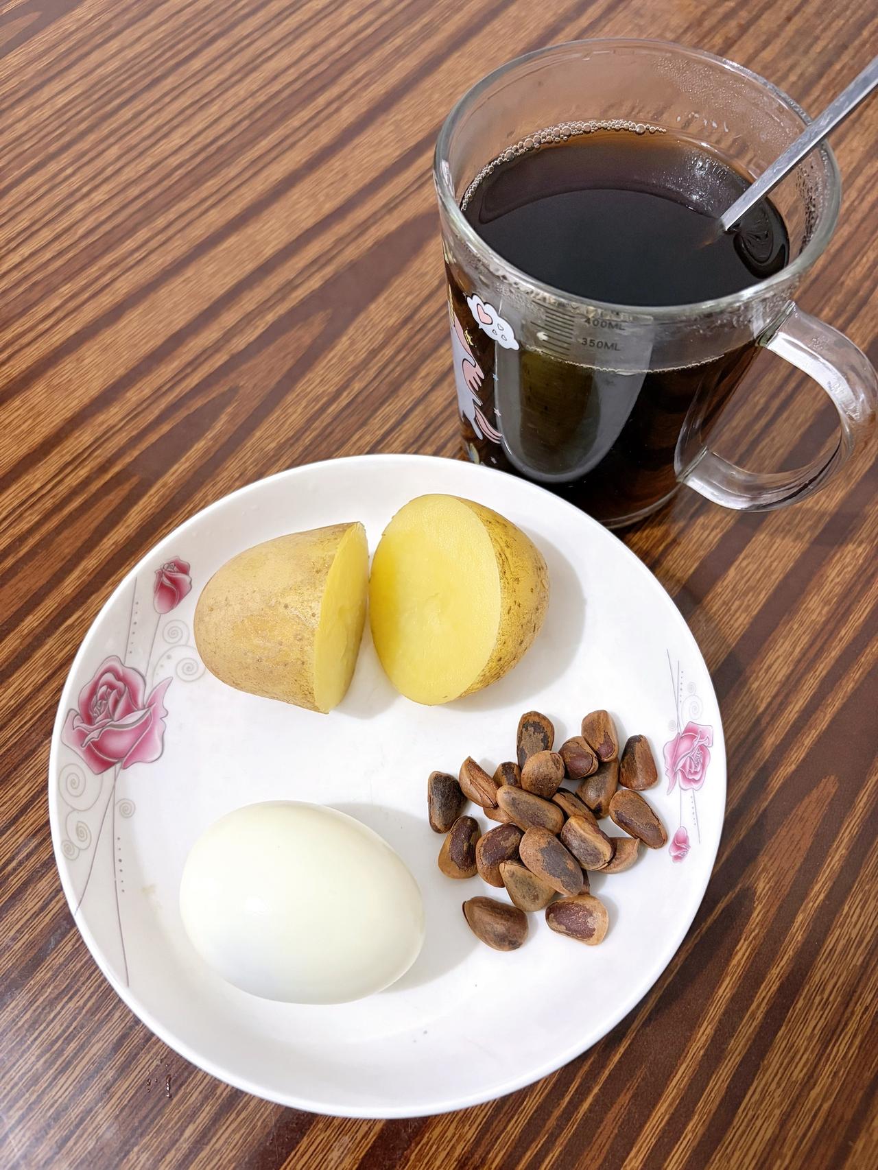 泪水打湿我的减脂餐,今日体重109.9斤⬆️0.2 今日减脂早餐:土豆+咖啡+鸡蛋+松子 体重管理
