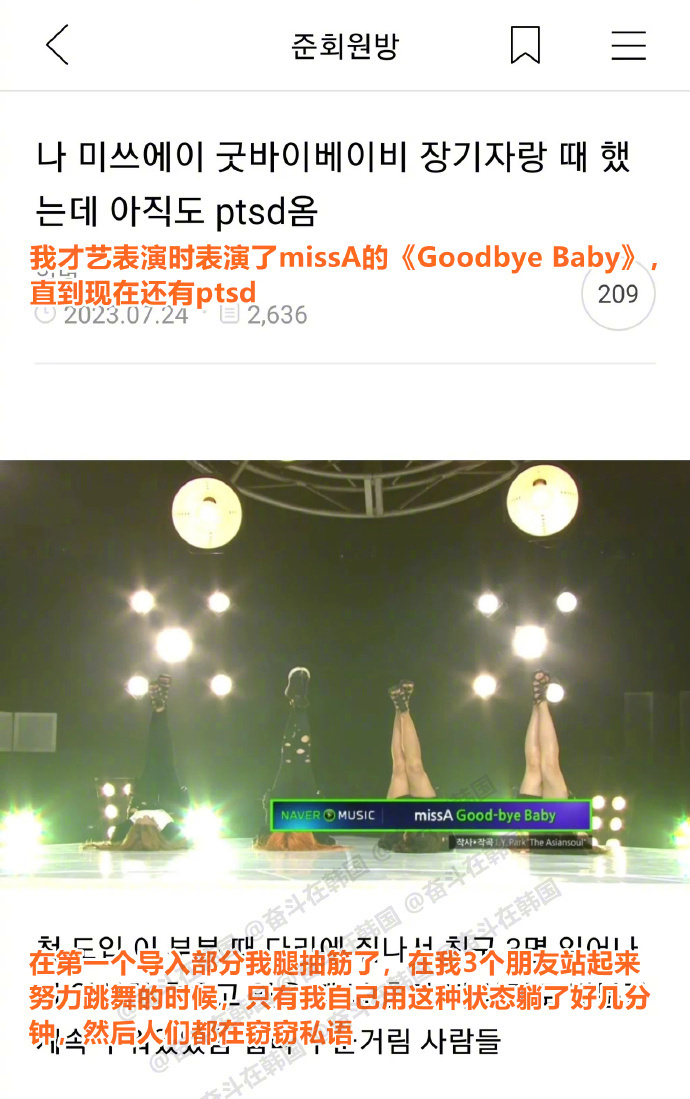 才艺表演时表演了missA的《Goodbye Baby》,直到现在还有ptsd