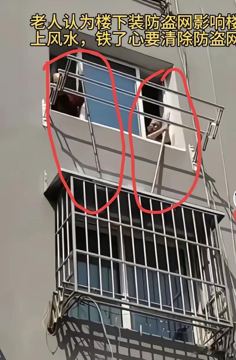 遇到这样的老人怎么办? 在网上刷到这样一个图片,看后让人愤怒,这是楼下一户装了防盗网,楼上老人觉得影响他家风水,天天拿个棍子敲。 遇到这样的邻居真的很烦,楼上这个人年龄大了,倚老卖老,真的拿他们没有办法。 楼下这家装个防盗网错在哪里?不装防盗网不安全,特别是有小孩子的家庭,为了孩子的安全,必须装防盗网。 楼上的老人,就是觉得自己老了,无法无天,打不得,骂不得,任凭他无理取阔耍无赖,楼下的人都怕他,拿他没办法。 作为老年人,也应该讲道理,不应该觉得自己年龄大了,胡作非为,让别人怕你。老年人违法,也应该承担法律责任。 遇到这样蛮不讲理的老人,不要惯着他们,应该及时报警处理。 朋友们,你们对此事怎么看?欢迎讨论! 声明(图片来源于网络,侵权联系删除)
