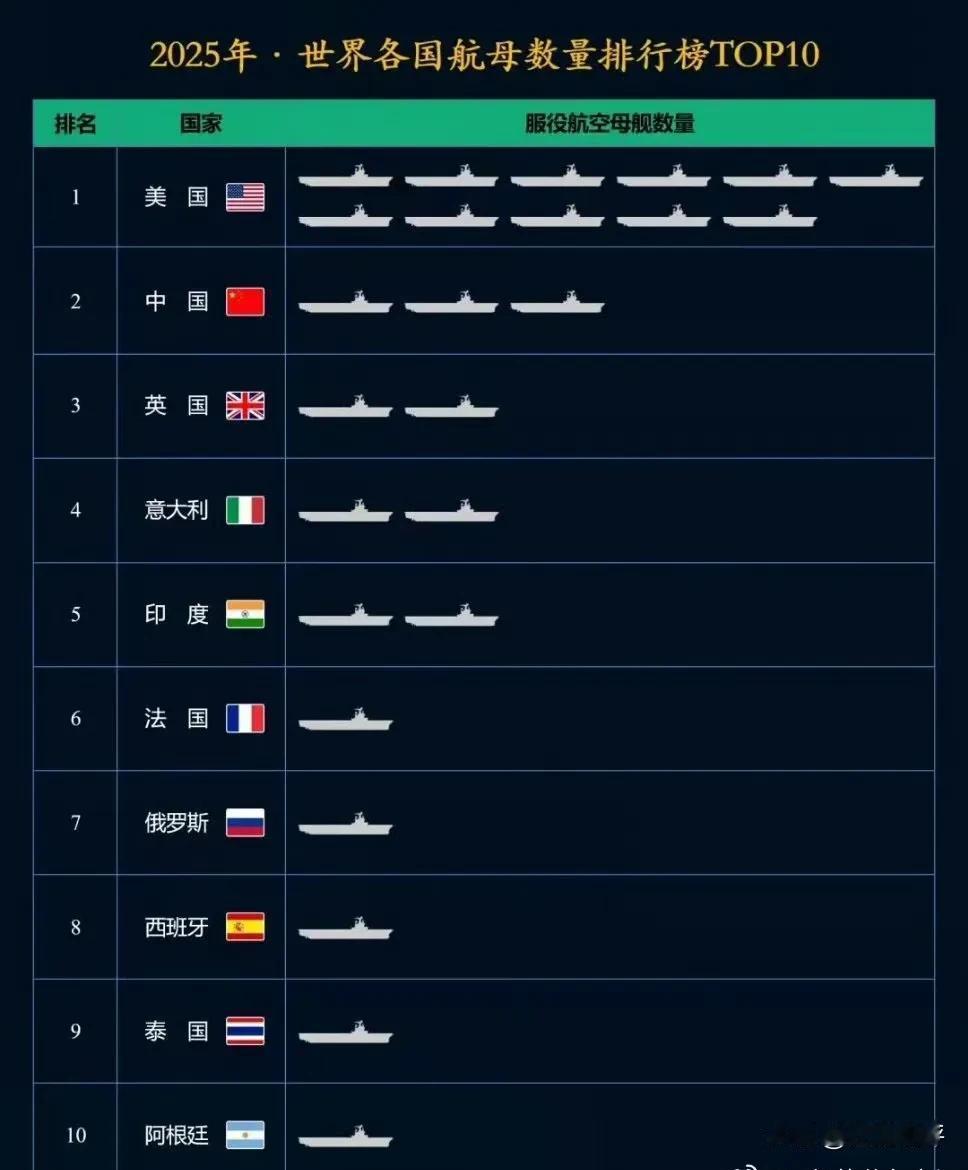 我国正式跻身全球第二大航母拥有国家,航母数量突破3艘,仅次于美国的11艘航母,三艘航母分别是辽宁舰(6万吨级)、山东舰(6-7万吨级)、福建舰(8万吨级),另外大连造船厂的004号航母据英国防务周刊卫星照片推测为核动力航母,4条电磁弹射轨道,排水量突破10万吨,预计达到11万吨,超越美国福特级航母,这也是我国第一艘核动力航母,意义堪比两弹一星!航母