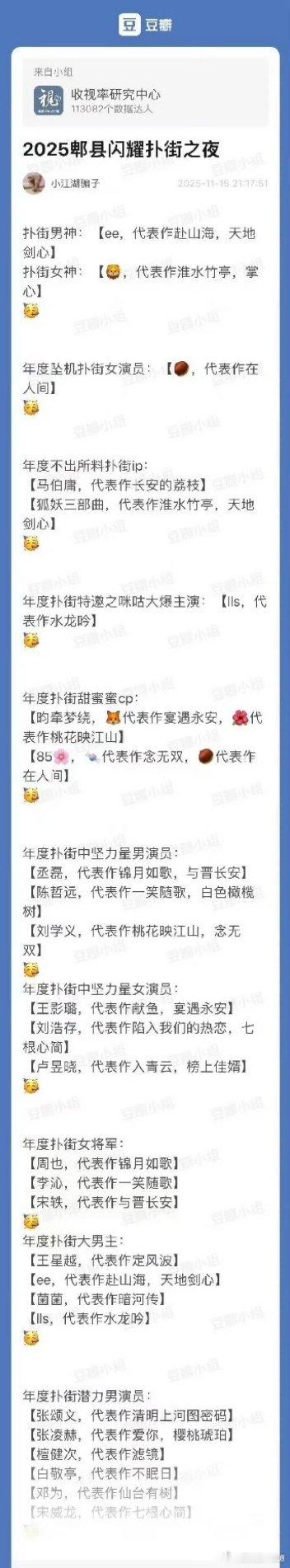 2025郫县闪耀扑街评选,真是不放过任何一个流量。别的剧没仔细看数据不评价,但是一笑随歌那个宣发,有这样的播放量还真算不上扑,念无双宣发也基本在裸奔。另外,双平台集均2634.7万是扑剧,那双平台2702.9万的就不是扑剧了?