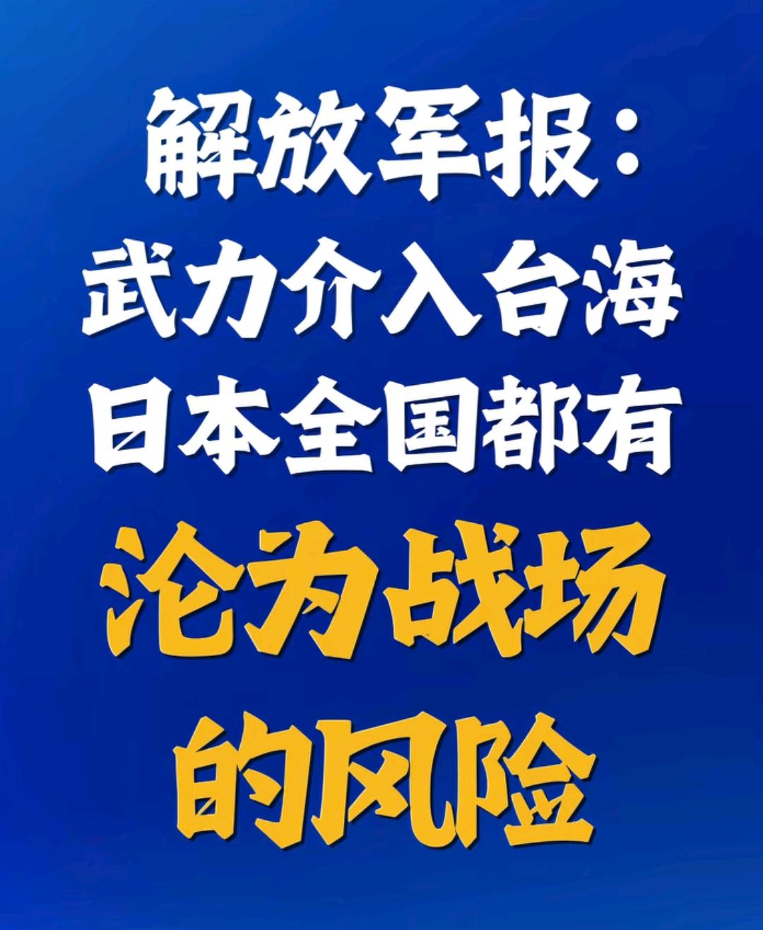 解放军报:武力介入台海日本全国都有沦为战场的风险! 这是直接的警告!以前顾及着日本的脸面,很多东西都不直接明说,现在日本不要脸了,咱们也可以不用给他面子。 历史需要我们这代人开创,没有先例也要创造先例!各位是怎么看的?欢迎评论区留言。