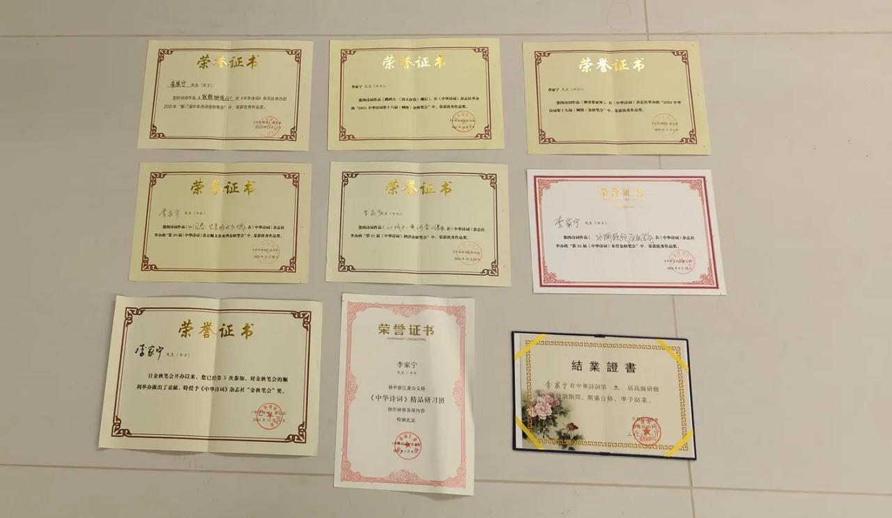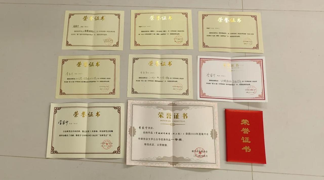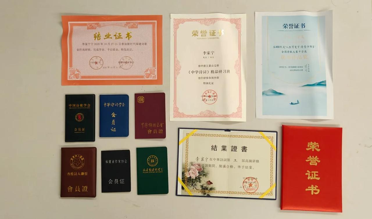 十五位《中华诗词》杂志、《中国诗歌学会》领导专家对李家宁六部专著的题词:即《红消香断》《诗和远方》《生如夏花》《初心逐梦》《穿越时间的雪》《赋咏山河》的题词: 1、贺李家宁诗集《生如夏花》付梓 一束夏花开灿烂,高珠培育勤浇灌。 家宁走在李桃中,要与春光长结伴。 2021年1月12日于京西白雨庐 ——宋彩霞 中国作协会员 《中华诗词》杂志原副主编 2、读《穿越时间的雪》赠李家宁 人生行迹有无中, 来似飞鸿去似风。 把梦装订成一册, 让它穿越四维空。 ——刘庆霖中华诗词学会副会长 《中华诗词》杂志社社长 3、贺家宁兄《穿越时间的雪》大作出版(嵌名联) 家山入梦情难了, 梅雪成诗气自宁。 ——林峰 中国作协会员 中华诗词学会常务副会长 《中华诗词》杂志社常务副主编 4、 延安结识李家宁, 笔绘山川意态灵。 文采斐然新俊秀, 遥观八闽起诗星。 一一李文朝 中国作家协会诗歌委员会原副主任,中华诗词学会原常务副会长,《中华诗词》杂志社原社长。 5、 登高不惧足音寂, 望远方开眼界新。 热血燃来尤火烈, 熊熊光焰曜青春。 ——与家宁先生共勉。 ——高昌  中国作协会员、《中华诗词》杂志 主编 6、贺家宁诗友《穿越时间的雪》出版 何年何日雪,香断与消红。 可了初心梦,夏花和碧空。 ——范诗银   空军大校军衔的军人和诗人 , 原中华诗词学会常务副会长,原《中华诗词》杂志社长 2025、3、5 7、题李家宁诗集 矢志为诗甘献身, 清奇飘逸在情真。 九州河岳供吟咏, 几个如君作达人。 ——胡迎建 中华诗词学会原副会长。 8、晋江诗会留别兼贺李家宁先生诗集付梓 莫向云山叹路遥, 晋江珠水两滔滔。 相期南北开诗闸, 共助奔腾海上潮。 ——熊东遨 中华诗词学会常务理事,湖南省诗词协会副会长。 9、贺李家宁先生诗集付梓 前程把握富春秋, 尚有高吟在后头。 八闽众多清涧水, 诗情不尽砚中流。 ——    星汉   新疆诗词学会会长,原中华诗词学会副会长。 10、贺李家宁先生诗集付梓 琳琅一卷耀青霄,境自开张韵自骄。 向是诗人诗意涌,年年助力八闽潮。 ——潘泓   《中华诗词》杂志副主编。 11、赠李家宁诗友 翩然回首六花开,闽北骚坛一捷才。 穿越时间都是雪,诗中梦里递香来。 ——卢冷夫  《中华诗词》杂志编辑部主任 12、李家宁是一位中学教师,长期在基层生活,诗集《穿越时间的雪》是他近年来创作的一个亮点。收录的作品有217首曾在各种报刊上发表。他的诗歌带有浓郁的情感色彩,用简洁而富有力量的语言,描绘美好与哀愁。读者可以感受到作者对生命的尊重和对日常生活的洞察。在忙碌的教学工作中,李家宁创作颇丰,体现了他对文学的热爱和坚持。 ——杨克 中国诗歌学会会长 中国作家协会主席团委员 一级作家 13、李家宁的诗歌创作,以其简洁而富有力量的语言,描绘人生的美好与愁绪,展现深刻的情感与思想。无论是对亲人的挚爱,对故乡的热恋,对历史的感慨,都在诗歌中深情而又自然的流露,让读者感受到诗人对生命的尊重度和对生活的洞察力。 一一诗人   青海省作协副主席 昌耀诗歌奖组委会秘书长   杨廷成 14、“李家宁的诗多是用心而作、随感而发、直抒胸怀、激情荡漾、振奋人心、无不充满大气与豪情。” ——中国作协会员、中国诗歌学会社会活动部部长马文秀对李家宁诗电影《汨罗江 喷薄一轮诗歌的太阳》的点评 15、诗人李家宁热爱文学写作,诗歌兴趣浓厚,且深得“诗即生活”的真谛,在教学的同时痴心钻研新诗、格律诗创作和文学评论,作品既有学者气质又有诗人情怀。 ———桫椤,《诗选刊》杂志主编 2025、3、30