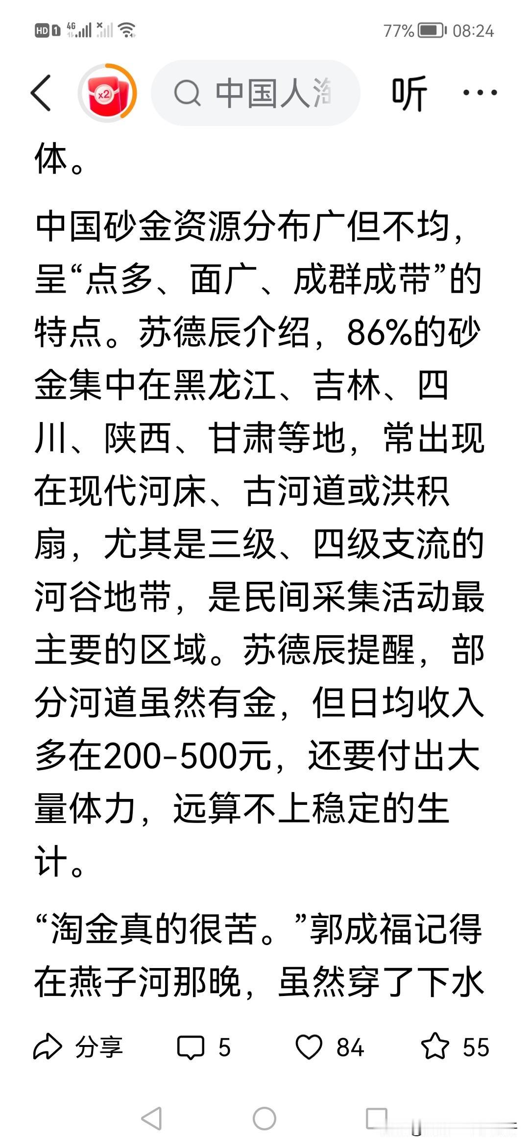 南方周末报道的淘金我小时候见到过 我老家就是小镇和金矿混合的,很多人都游手好闲,但是日子过得比我们舒坦,什么都不干吃香喝辣。 后来有人说他们是从金矿里偷那种矿石,回来淘出来,矿石含金量要比河里沙子高多了,后来我也见过在河里淘金的,拿着簸萁一样的东西,我还好奇的去摸摸他掏出来的小金粒子,黄莹莹的,很小的,大米粒那么大。那时候黄金也没多贵。 后来家乡金矿基本没资源了,很多工人都被迁移到更偏远的新矿,没去的后来下岗开不出来工资的很多! 不知道为什么这个淘金画面触及我的记忆。 应该是又出现这么多人靠手工淘金讨生活,回到九十年代了! 也正是金矿变迁让我姐远嫁,如果她在家里,她不会早早病逝,我也不至于缺了一个最亲的手足! 也正是当年淘金用重金属才会有污染,我生活区域不在矿区,但是矿区不行!