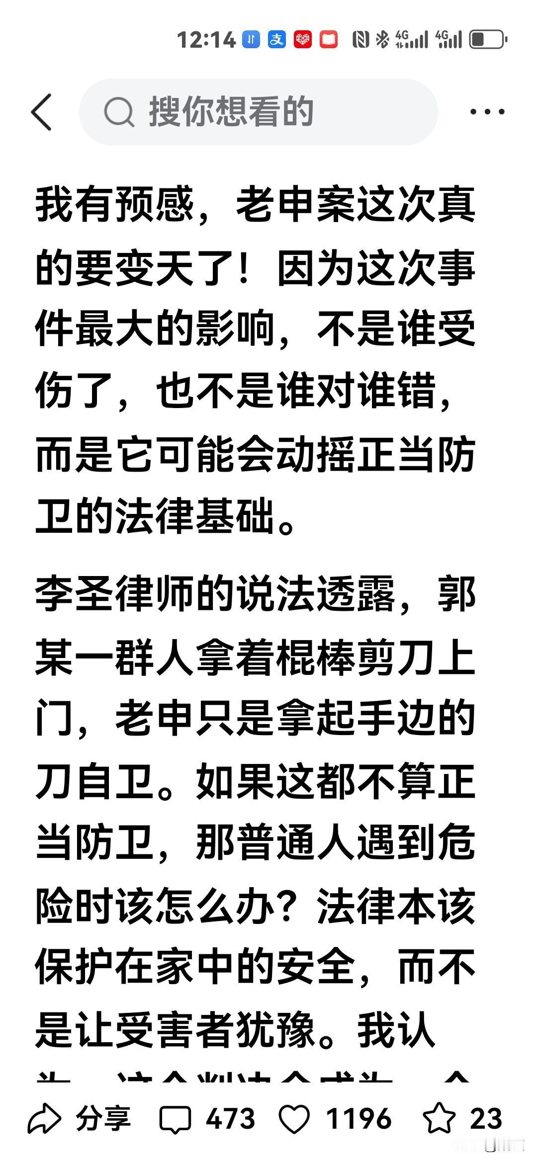 这不是一个剪刀的问题,而是上一个阶层对下一个阶层的鄙视。 如果没有剪刀,老申就不是正当自卫吗? 律师先生,难道棍棒对生命的危害,比剪刀小吗?一伙子人闯入私宅,围殴老申,他还不能自卫吗? 你是仗义的律师,但也脱离不了阶层的局限性,你本质上和大法官们,和郭家,属于同一个阶层,你体会不到最底层人的无助和卑微。 就这样一个明明白白的案子,还要一审再审,说三道四,非要找什么剪刀,你们这无非是瞧不起老申家呗!