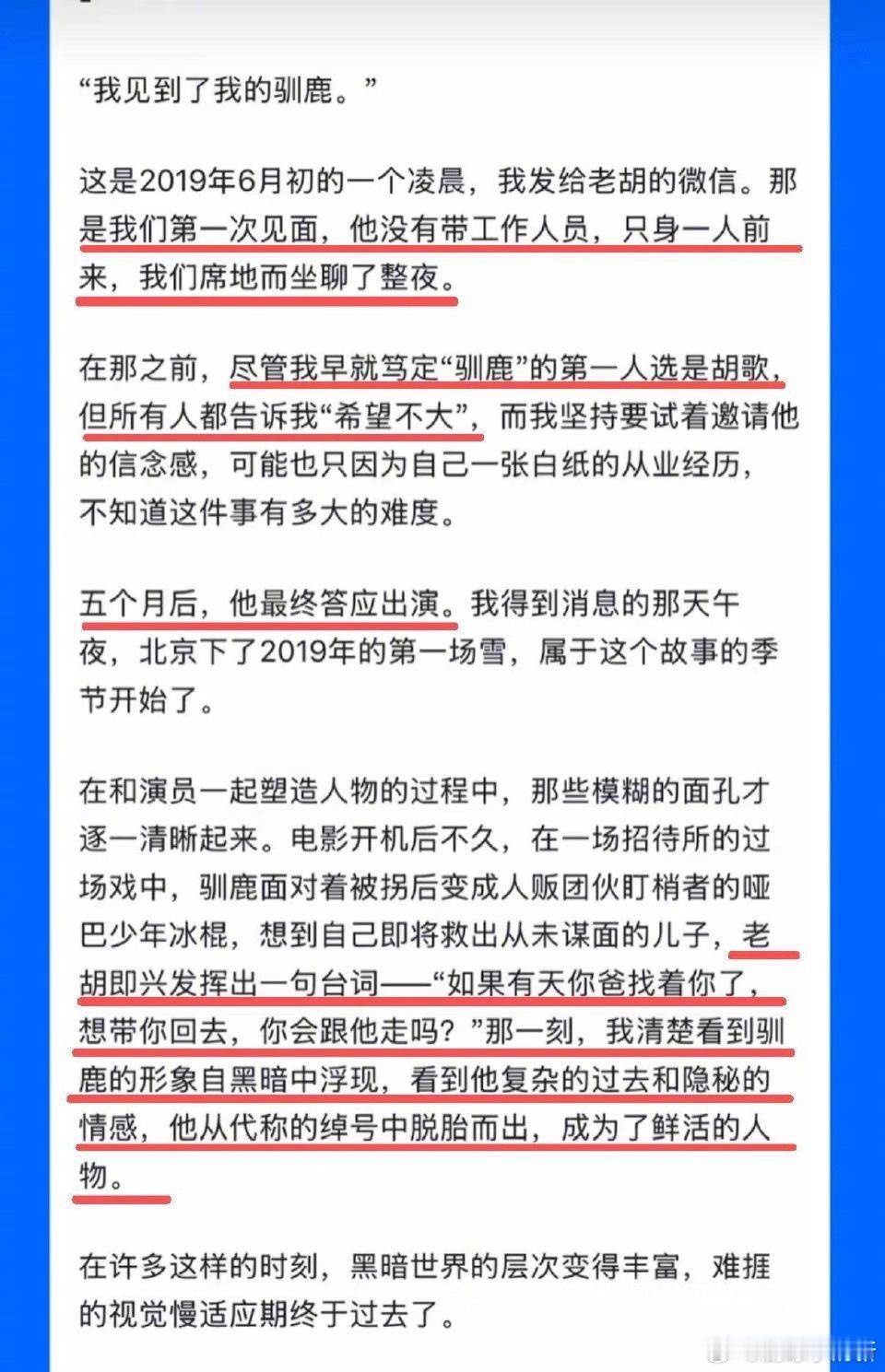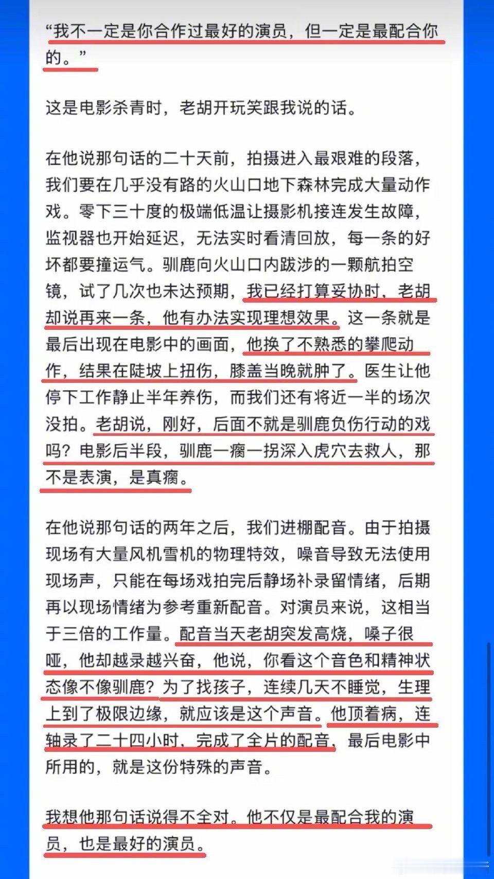 导演一句"我见到了我的驯鹿",换来的是胡歌数年如一日的全心投入。在每一个艰难时刻的相互扶持,在每一个镜头里的全然交付,这才是艺术创作最美好的模样。