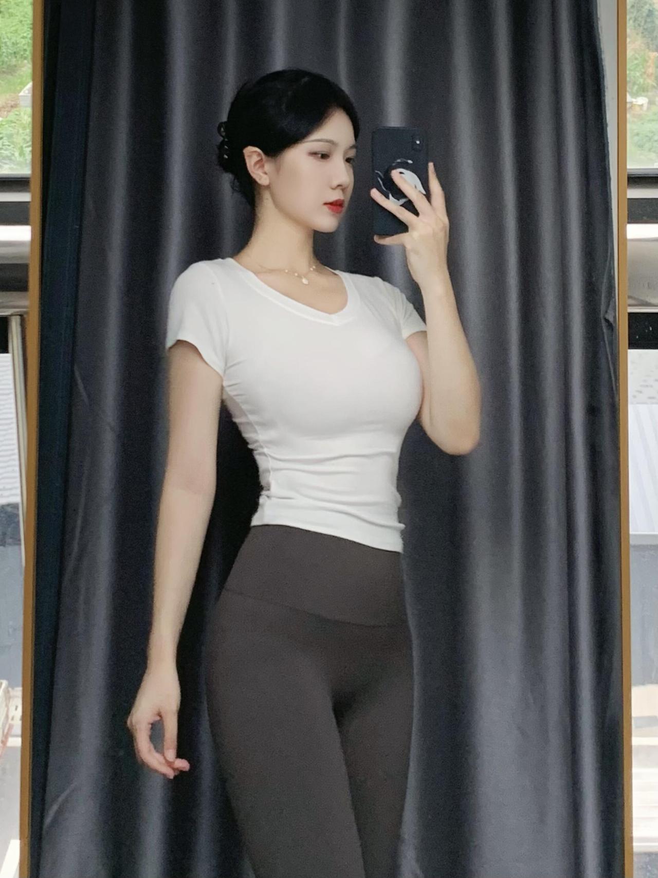 优雅自拍,简约白T恤搭配高腰裤,气质满满!