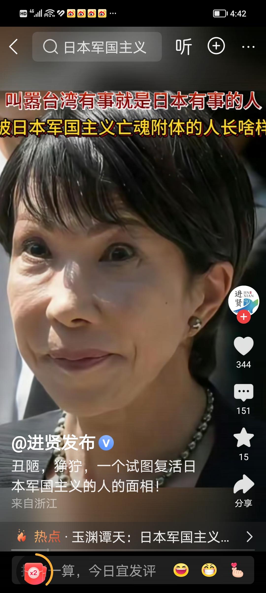 高氏早苗叫嚣湾湾有事,就是日本有事。谁给她的底气和胆量?这个女子长的有点奇怪,面