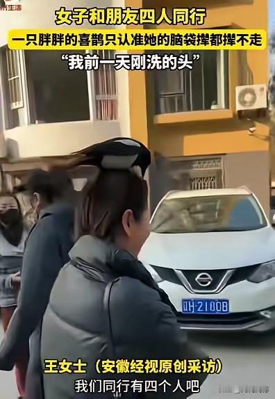 喜鹊落在头顶上,这真是喜从天降!女子逛街,让她没有想到的是,一只喜鹊竟然落在了她的头上,据说在头发上待了有十来分钟,把女子新做的头型都给弄乱了,但是女子非常善良,并没有伤害喜鹊,这是人和动物和谐相处的典范!