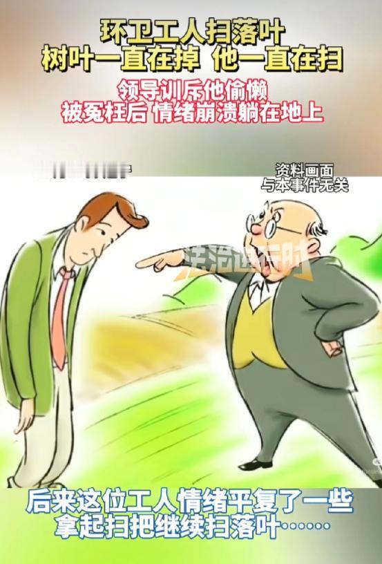 “不容易啊!”辽宁,一环卫工人在扫落叶时,结果树叶一直掉,他一直扫。领导训斥他偷懒。环卫工人接下来的举动让人破防。 苛刻环卫工人的干部就可以说他们离人还有一段很远的距离! 不是在骂他,是他在讨人骂! 秋天!树会不停地落叶子的,谁能做到地上一片叶子都没有? 不只是环卫工,无论是厂矿公司企业还是工地,那里有农民工那里就有这种被训斥吆喝声,这些黑心奸商跟本就不允许农民工有片刻的停顿,无论你干活的有多快有多累都闲你干的慢,一年的活恨不得让你一天干完。 此刻正是秋风落叶时,风一吹树叶漫天飞舞,环卫工人的确非常辛苦,树叶不停的落,工人不停地扫。尽管这样做了,但路面上的树叶随着风声一片片的落下。即使神仙,也不能确保路面没有落叶。 或许那位领导有超俗的功能和本领,不妨让那位领导给带个示范作用。