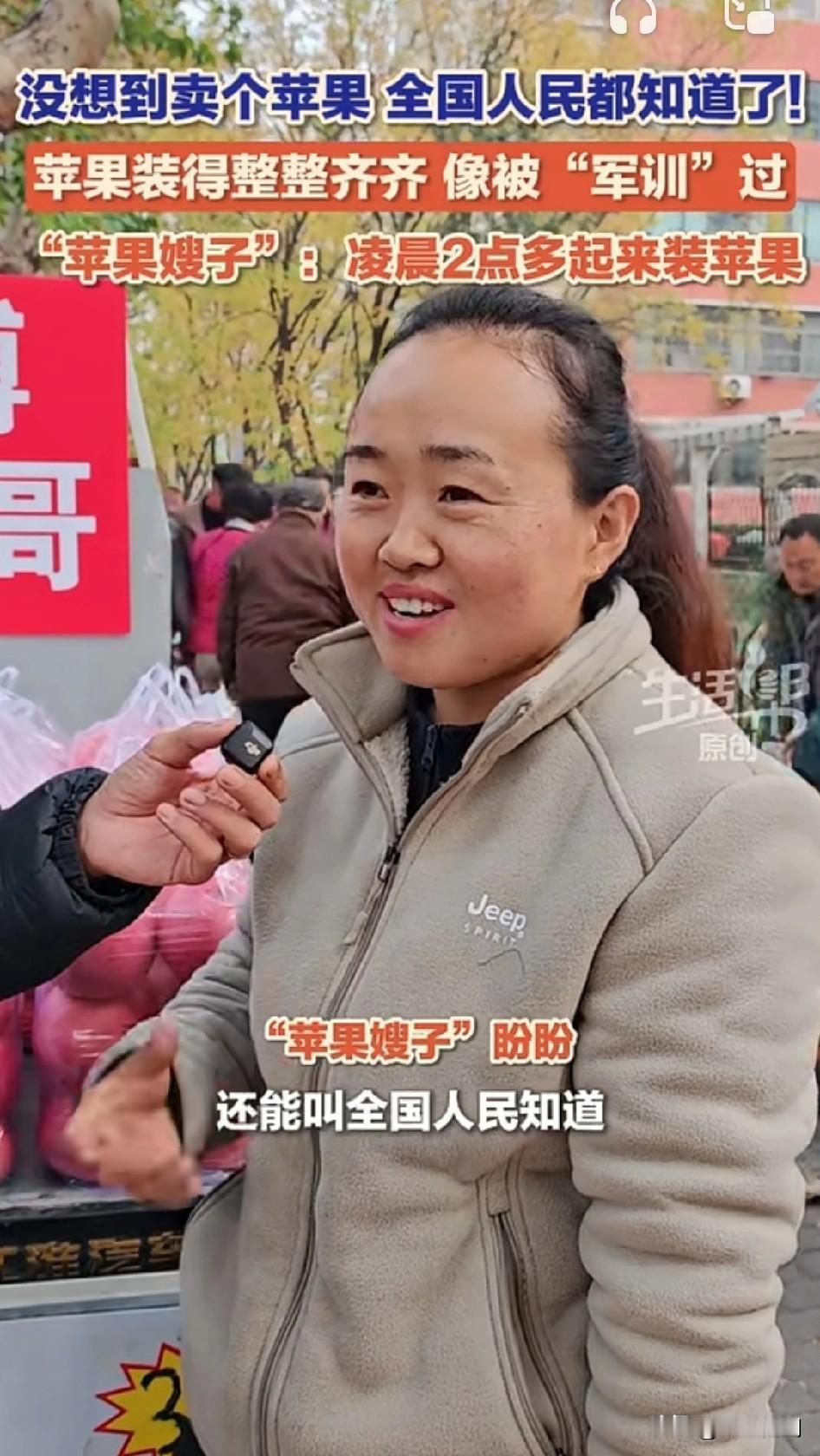 大哥的苹果果然火了,全国人民都知道了!近日,山东淄博,记者实地探访“ 苹果哥 ”摊位,苹果依旧装得整整齐齐,像被“军训”过。 “苹果嫂子”:早早的就起来了,凌晨2点多起来装苹到六点钟,然后来卖,晚上装、白天卖,有点累但是很幸福。 嫂子长得就像个苹果🍎[捂脸] 这是对生活的热爱[赞][赞][赞][赞],对自己职业的尊重[赞][赞][赞][赞] 看的我都想去买,买的放心,省心去挑,不乖人家赚钱,现在的市场很多老板都是偷奸耍滑。