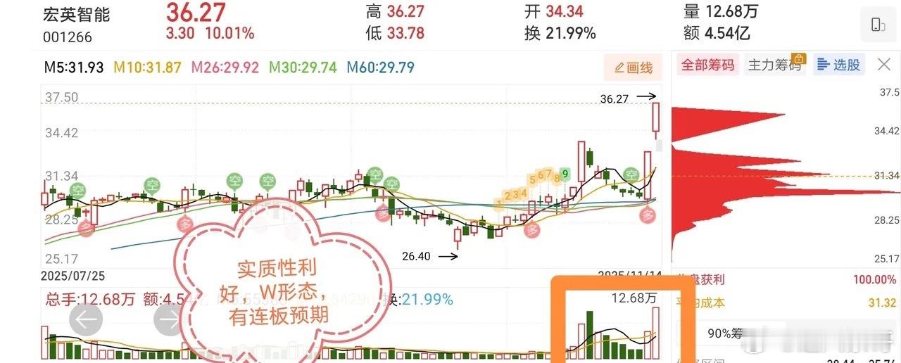 11.16十大价值投资人气热门股票点评1、中国武夷:上涨趋势,谨防回调2、联化科技:弱势封板,高抛低吸3、宁德时代:横盘震荡,低吸为主4、山子高科:下跌趋势,还没有止跌5、中水渔业:趋势上涨,持股拿好6、中国中免:震荡洗盘,低吸机会7、华映科技:强势反转,连板预期8、荣盛发展:上涨趋势,低吸拿好9、大众公用:反弹迹象,不够强势10、华盛锂电:趋势龙头,持股拿稳宏英智能:概念加持:液冷储能+机器人+6.16亿合同+三季报扭亏概念有实质性利好,流通盘小,刚刚拉升,换手连板,有连板预期