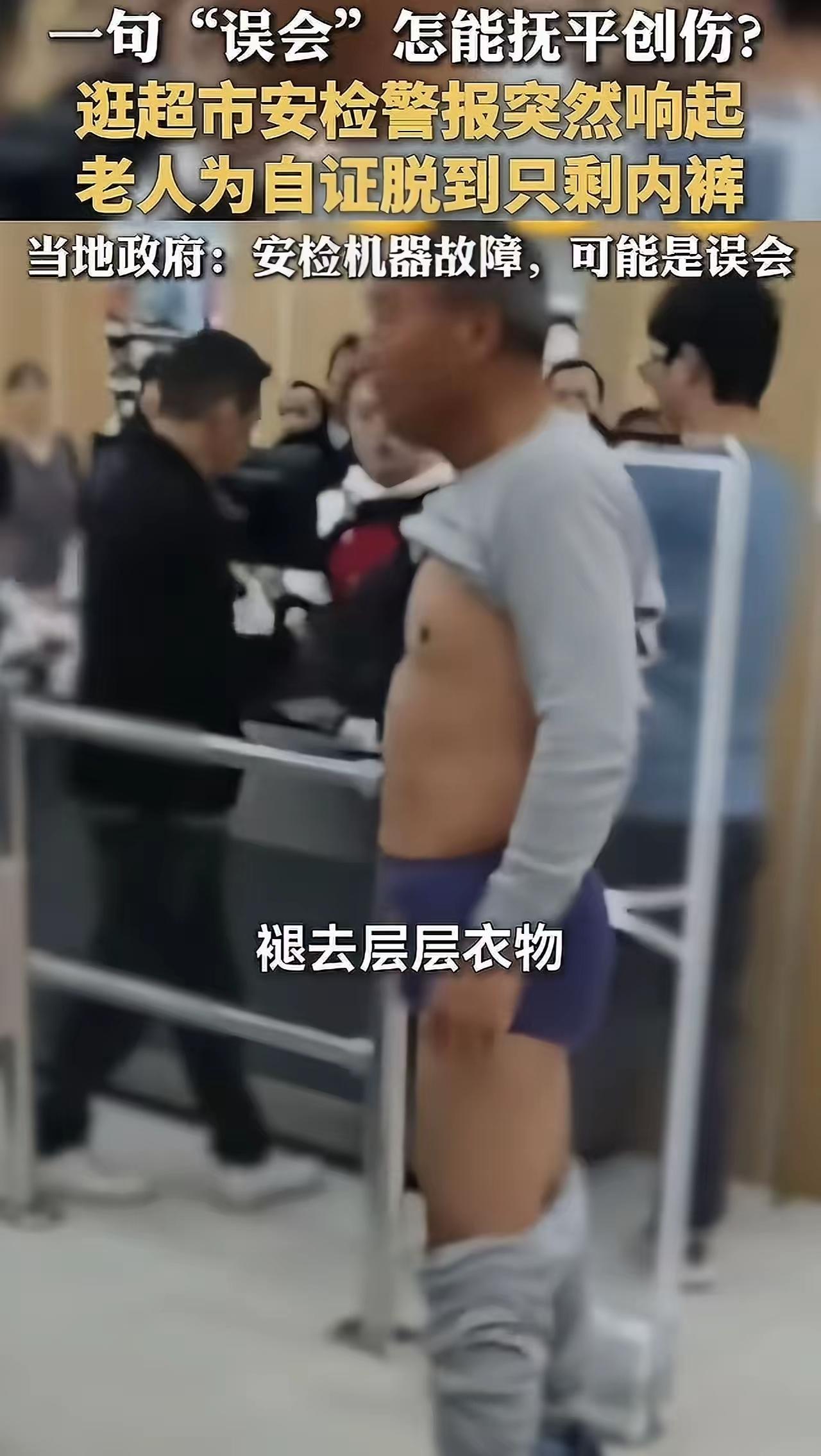 我的天爷!巢湖超市里大爷当众脱得只剩内裤,就为了证明自己没偷东西! 我刷到这事儿时嘴都合不上!大爷结完账过安检,那机器突然“嘟嘟嘟”狂叫,工作人员立马拉住他,话里话外都怀疑他藏了没结账的东西。周围人越围越多,指指点点的,换谁能忍? 大爷气得脸通红,百口莫辩,干脆心一横,当场就把上衣撩了、裤子脱了,就留条内裤再凑过去——结果那破机器还在叫!原来根本不是大爷的问题,是超市设备老化误报了,工作人员就轻描淡写一句“误会”。 这哪是误会啊!当众受这委屈,换谁都咽不下这口气。做人的尊严可不能这么被糟践,超市真该好好给个说法!