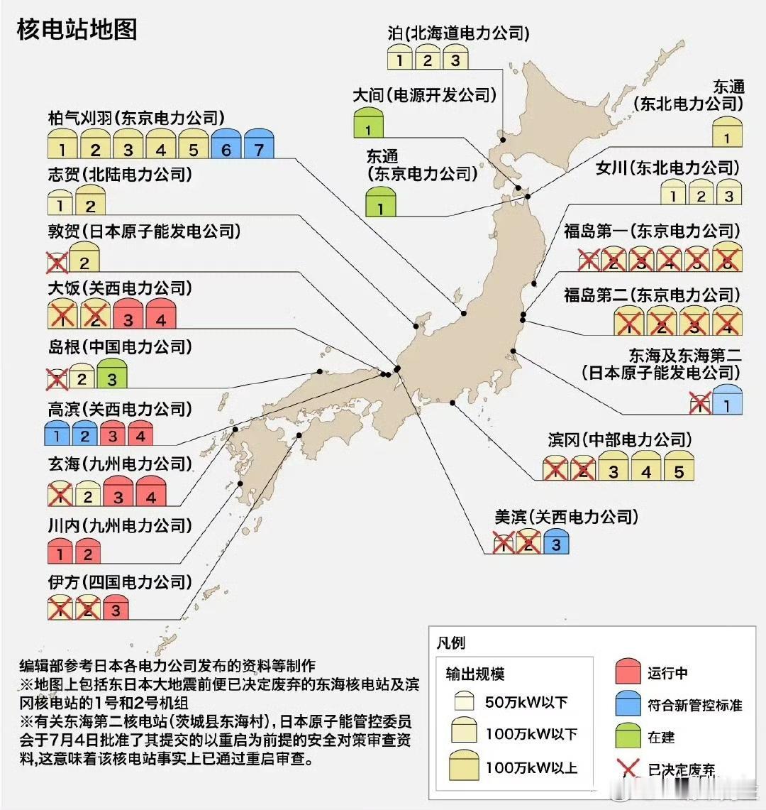 日本的核电站分布地图! 日本的核电站分布全都在沿海地区,其中最知名的就是大家所熟知的福岛核电站。 发这个图没有别的意思,大家可以看一看,日本的核电站分布还是特别的密集地。 各位是怎么看的?欢迎评论区留言。