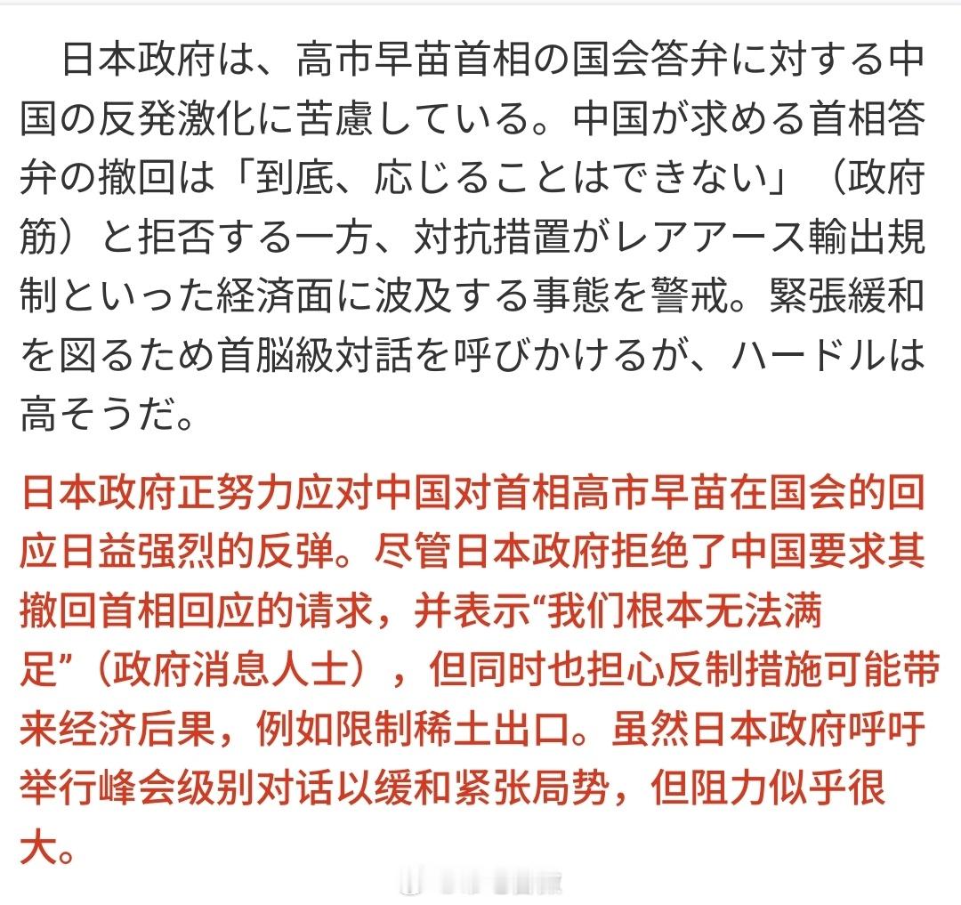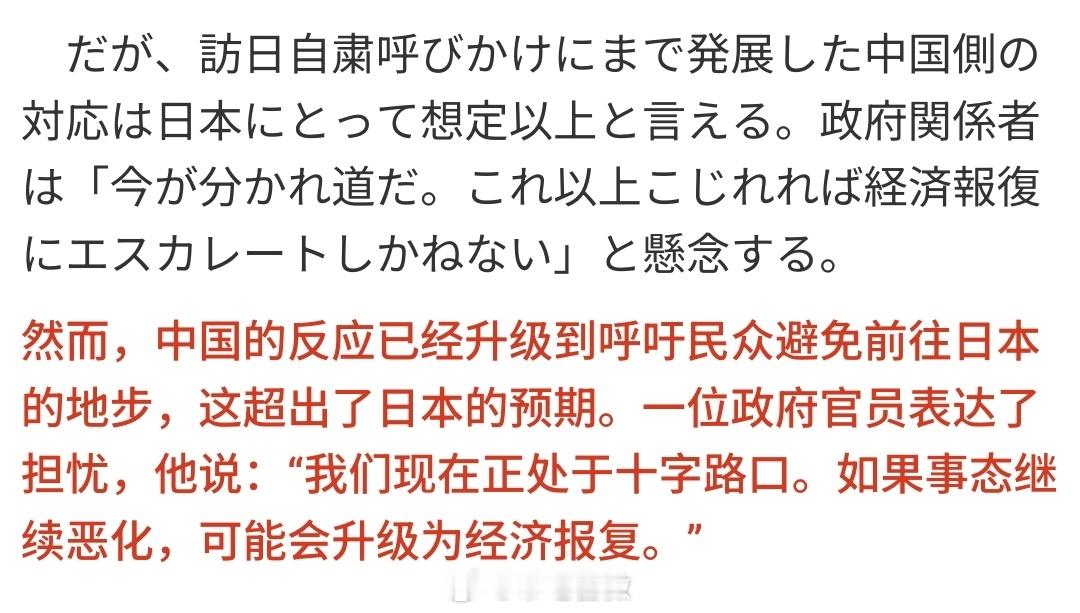 日媒:日方陷入两难境地,一方面“绝不可能接受”要求撤回高市早苗答辩言论的要求,另一方面又害怕遭到“经济报复”,东大呼吁民众避免近期前往日本已超出日本政府的预期。日本的最优解明眼人都知道,要么撤回言论要么让高市早苗引咎辞职,只是高市或其背后势力不愿意低这个头,难办就等周一被接着办咯。