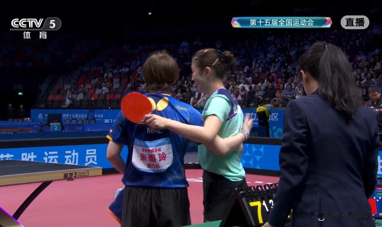 第十五届全运会,澳门奖牌零突破还在等待……寄希望的朱雨玲,以1:4不敌奥运卫冕冠军陈梦,夺得全运会女乒单打第4名,与奖牌无缘。 双方奉献了一场精彩激烈的比赛。赛后,陈梦与朱雨玲相拥。