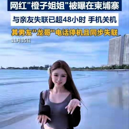 网红“橙子姐姐”在柬埔寨失联, 此前说是去找男友玩,姐姐说她原计划13日回国,连同行男友也同步失联,想想都让人揪心! 别觉得“找男友旅游”是浪漫小事,异国他乡的未知风险远比想象中可怕。尤其是网红这类有一定曝光度的群体,轻易透露行程和目的地,本身就藏着隐患。 很多人被爱情冲昏头脑,忽略了对对方真实情况的核查,也忘了陌生国度的安全边界。 失联背后可能是意外,也可能是陷阱,但无论哪种,都给家人带来了毁灭性的打击。 跨境出行绝不能掉以轻心,哪怕是见熟人,也得提前留好后路、告知亲友详细行程。你觉得外出旅游,该做好哪些安全防护才能避免意外?柬埔寨失踪案