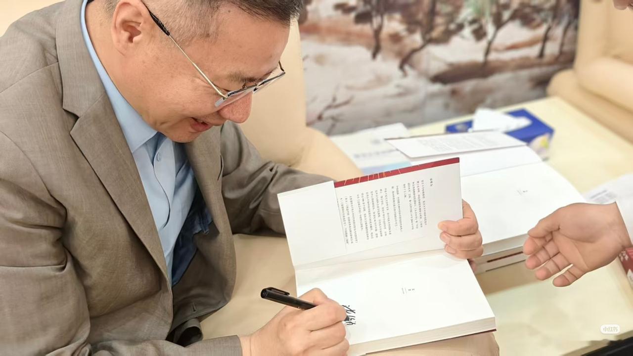 这是张维为教授近日在河北的照片。 复旦大学张维为教授近期在河北做一些文化交流上的工作。如图一所示,张教授坐姿优雅,面带微笑,与相关人士在讨论文化交流的事情。 图二是张教授签名的现场。有些人不仅喜欢张教授的书,还想张教授来签个名。像张教授能在现场签名,这种机会对喜欢张教授的人来说是可遇不可求的。张教授会满足大家的期待,认真地在每一本书上签好字,让粉丝们梦想成真。