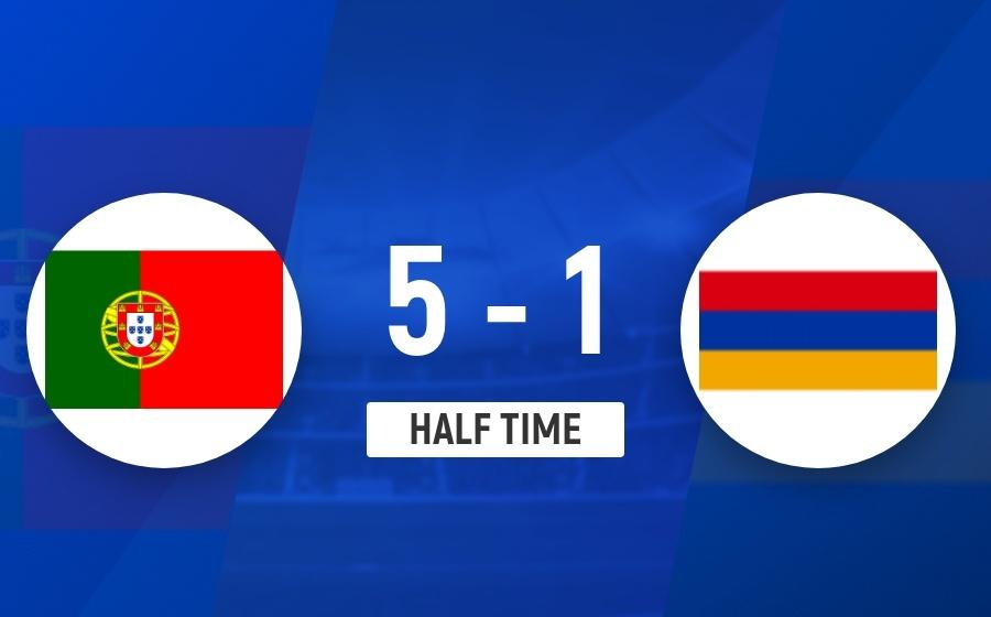 半场打花!迪亚斯造点,B费点射破门!葡萄牙5-1领先亚美尼亚! 今日世预赛,葡萄牙vs亚美尼亚,上半场补时阶段,迪亚斯禁区被拉拽倒地,裁判判罚点球!随后B费点射破门!葡萄牙5-1领先亚美尼亚!