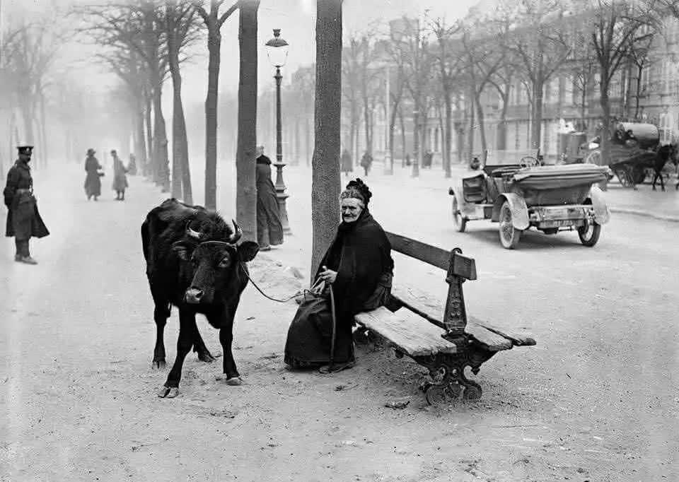 1918年布列斯特條约签订,让德国从东线可以抽掉250万以上的部队回到西线作战。当时德军统帅兴登堡与鲁登道夫都非常自信,将可用雷霆万钧的力量让英美法三国全面崩溃,德军将赢得第1次世界大战。1918年3月,德军在比利时与北伐。集结560万的部队,开始发动历史上的5次猛攻,整个大战进入最关键的时刻。图为一名在北法的老农妇,牵着自己唯一的财产老牛,退入亞眠城躲避战火。 FW