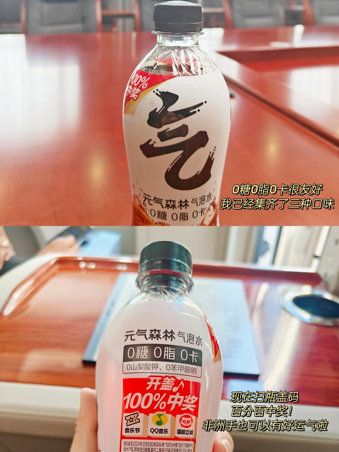 顺便说下,百分百中奖是元气森林气泡水今年的活动哈,买活动款扫瓶盖码均中奖,奖项价值就在3-5元了(中啥都回本hh),非洲之手也能百分百中奖,我想下班后再来一瓶,看还可以开出什么签。随时等待好事发生!