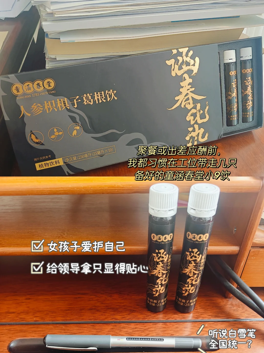为保 证自己身体健康,能流利说出上面的话,我都在工位上备一份童涵春堂的小9饮,我是去年老国货之风兴起时种的草。他家到现在有241年了,小9饮里面的长白山人参、枳椇子、葛根这些老祖宗的宝贝,听起来就安 全感满满,小小一支外出带很方便,饭局前后来一支,淡淡的甜伴着人参味,帮自己不出错~