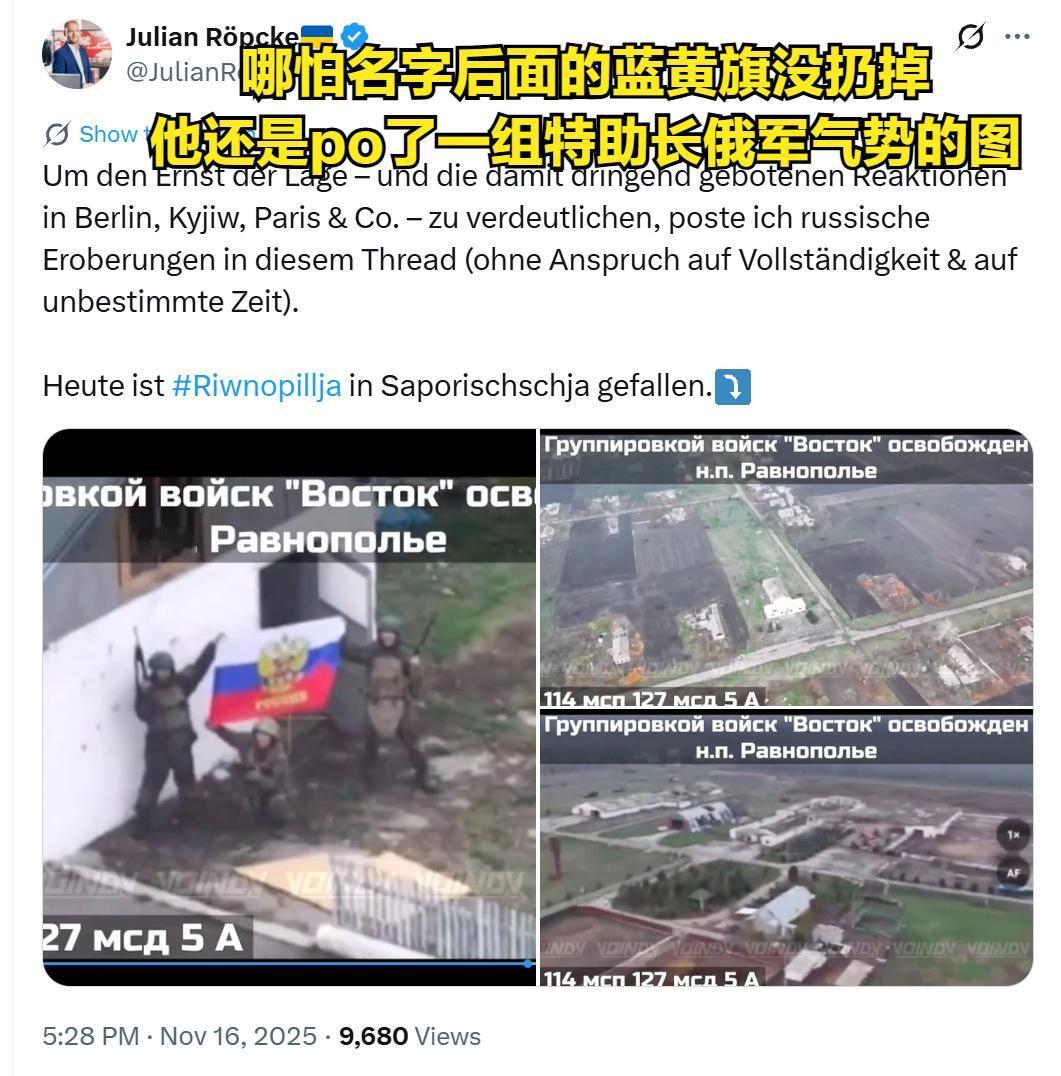 “将军,我们向前进军是对的,错的只有方向。” 啊哈哈哈,德国最知名的挺乌“战略”分析师,朱利安·罗普克宣布自己最近几周发布战略分析寥寥无几,原因是乌克兰已经走向“战略性失败”。 不再是“战略性撤退”、“战略性诱敌深入(被包饺子)”、“战略性放任逃兵”,这次德国大师直接在战败二字前加上了“战略”。确实是有点为难大师了。 毕竟他也说不清楚,乌克兰拿到交付的2000多辆坦克、步兵战车和装甲车部署到哪里了,乌克兰每月“动员”的17000人被部署到哪里去了。他自己承认,一场注定结局是失败的局,已经没什么好分析的了。 有迹象表示,他或要叛道,成为俄罗斯的小迷弟了。