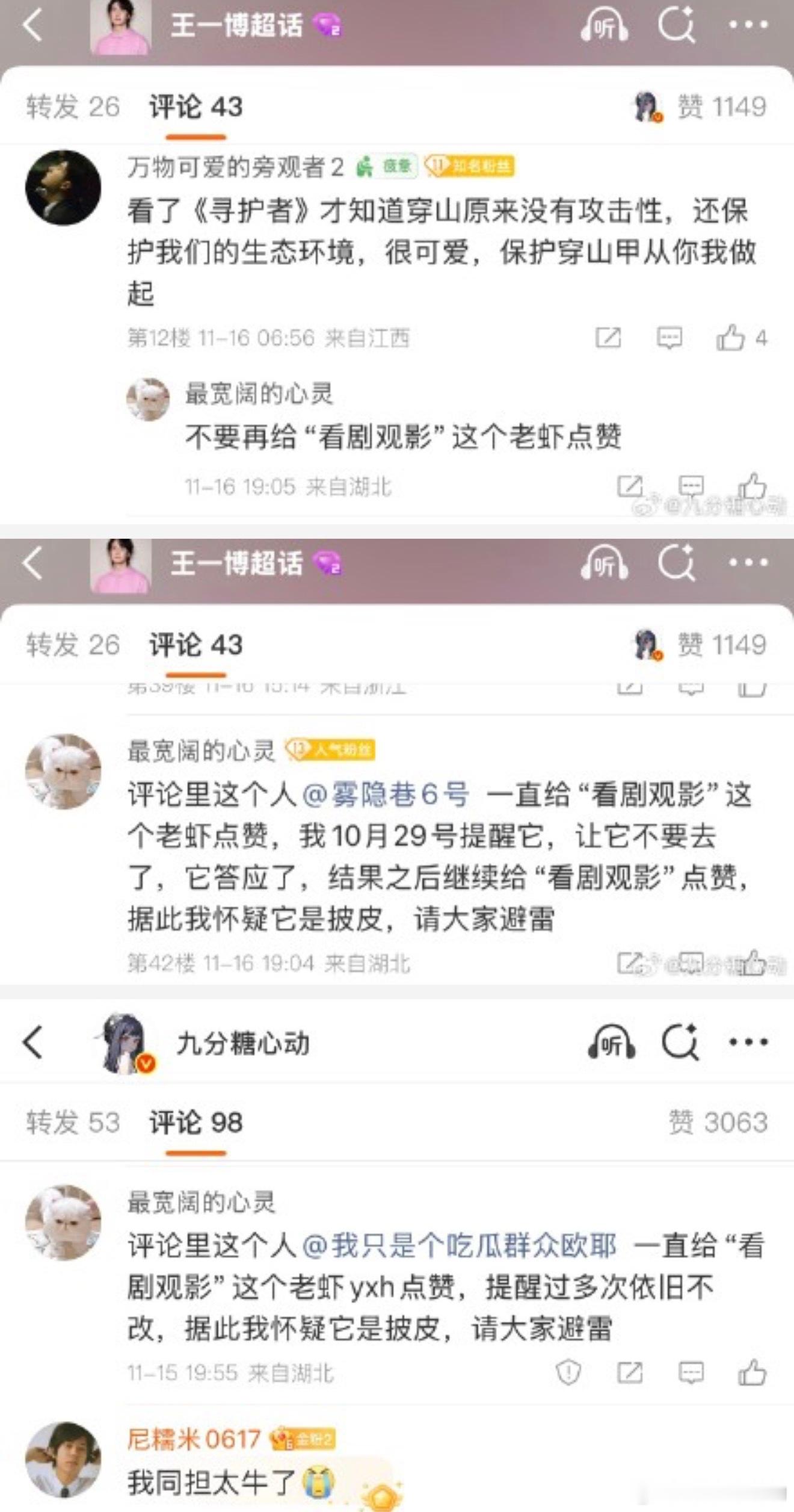 我就不懂了,这人到底在应激啥?我有不让你说谁是营肖耗吗?在这偷换概念我说的还不明白吗?你说谁是营肖号,你自己去自己的wb或者sx提醒,可能小散粉不懂,没必要在我评论区一直艾特攻击小散粉。一开始发我也没说啥吧,最近到处攻击那种小粉丝,甚至只在博子红稿下面到处攻击人,自己是没wb和私信啊。 红稿下面不想看到这些,谢谢了,红稿只想看到夸夸相关明星哈