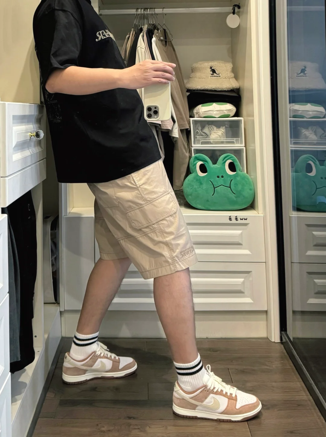 -卡其,应该是最适合工装风的色系之一;适合通勤的纯色Tee,尼龙材质的工装短裤,条纹短裤搭配同色系球鞋,极简夏季穿搭 . —————— . 👕Hyperkiller // L . 🩳Teenie Weenie Men // XL . 👟Dunk low / medium curry // 42 . —————— . ✏️本人178cm75kg 球鞋尺码265mm(正常EU42) . 💭以上均为我个人观点,不喜勿喷,欢迎讨论。