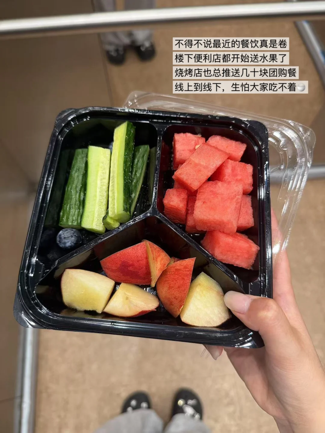 谁知我俩竟然一个路线,都是一路直奔楼下外卖区!