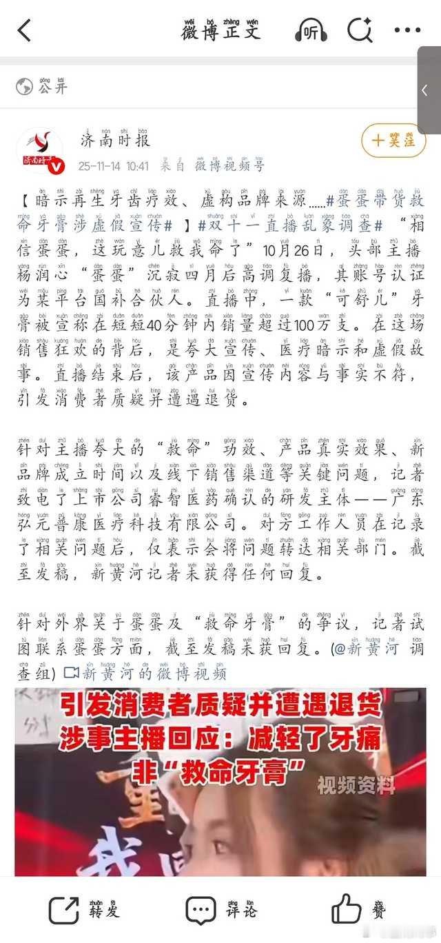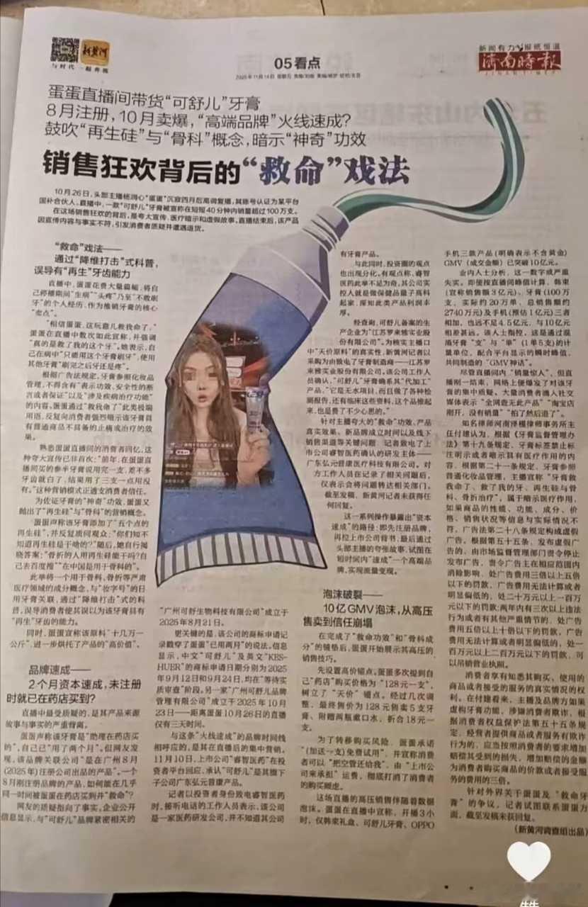 蛋蛋带货“救命牙膏”登上济南时报纸媒头条!