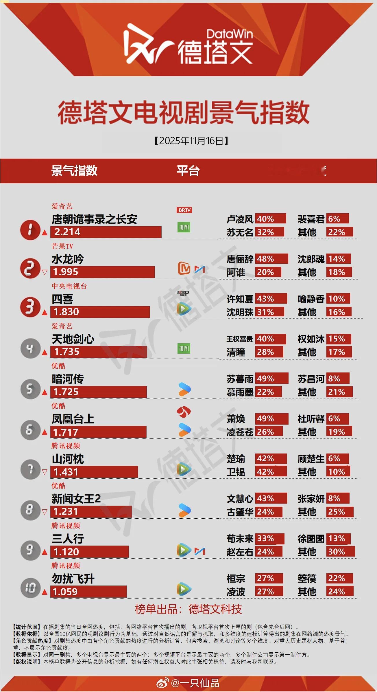 德塔文今日电视剧景气指数榜李宏毅一番男主剧《勿扰飞升》仲玺桓宗top10李宏毅一番扛剧能力很强,一骑绝尘,就是这么牛