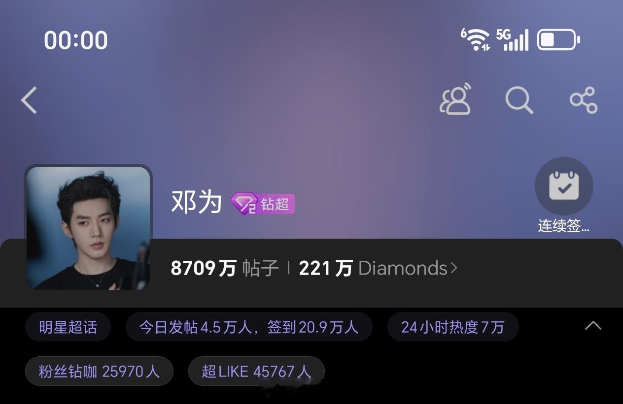 邓为昨日超话发帖和超like4.5万+钻石们真的好好,好热血,邓为太优秀了