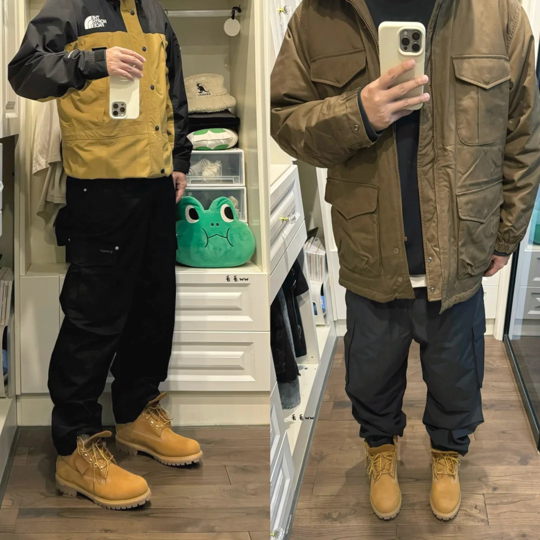 卡其工装裤|大黄靴穿搭