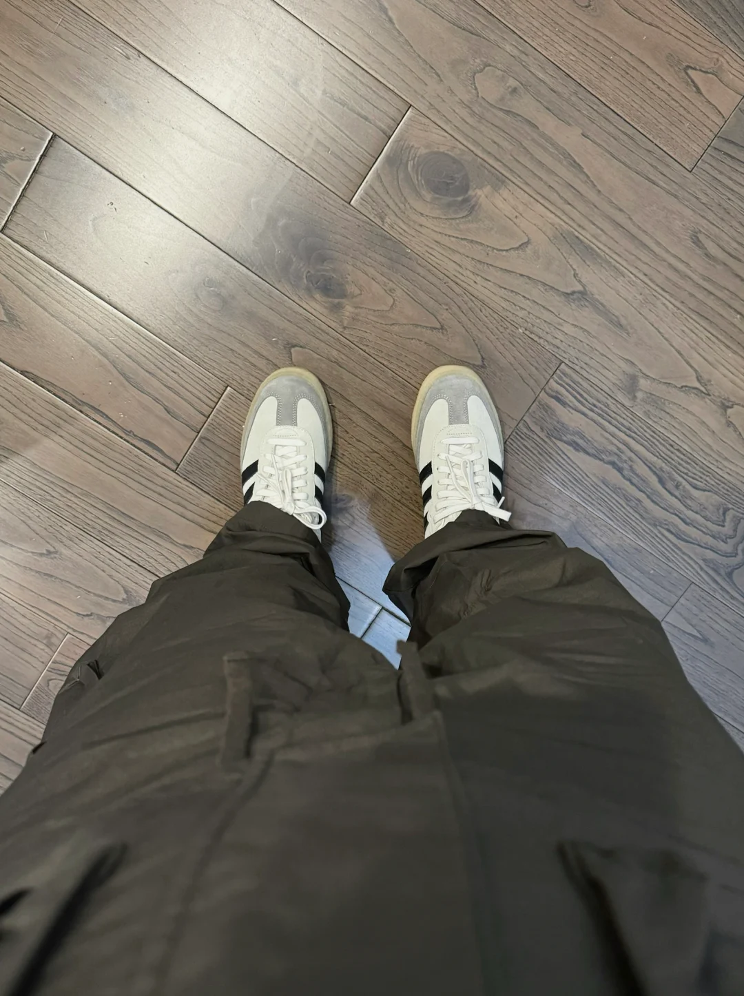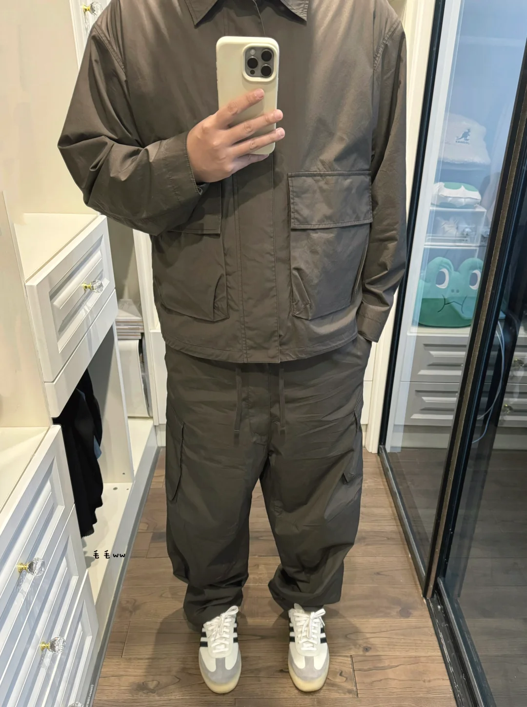 -U家这个棕不棕绿不绿的配色,推出过太多次了,算是特色了(官方叫深褐色) . -工装裤变窄的改动还不错,相比之前的阔腿裤型更好驾驭,跟短夹克来套同色搭配 . —————— . 👔Uniqlo :C / 475403 // L . 👖Uniqlo :C / 476193 // L . 👟Adidas Samba / Kith x Clarks // 42.5 . —————— . ✏️本人178cm75kg 球鞋尺码265mm(正常EU42) . 💭以上均为我个人观点,不喜勿喷,欢迎讨论。
