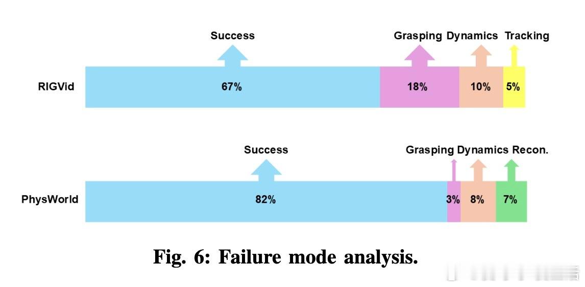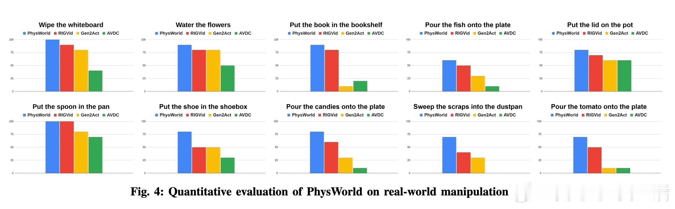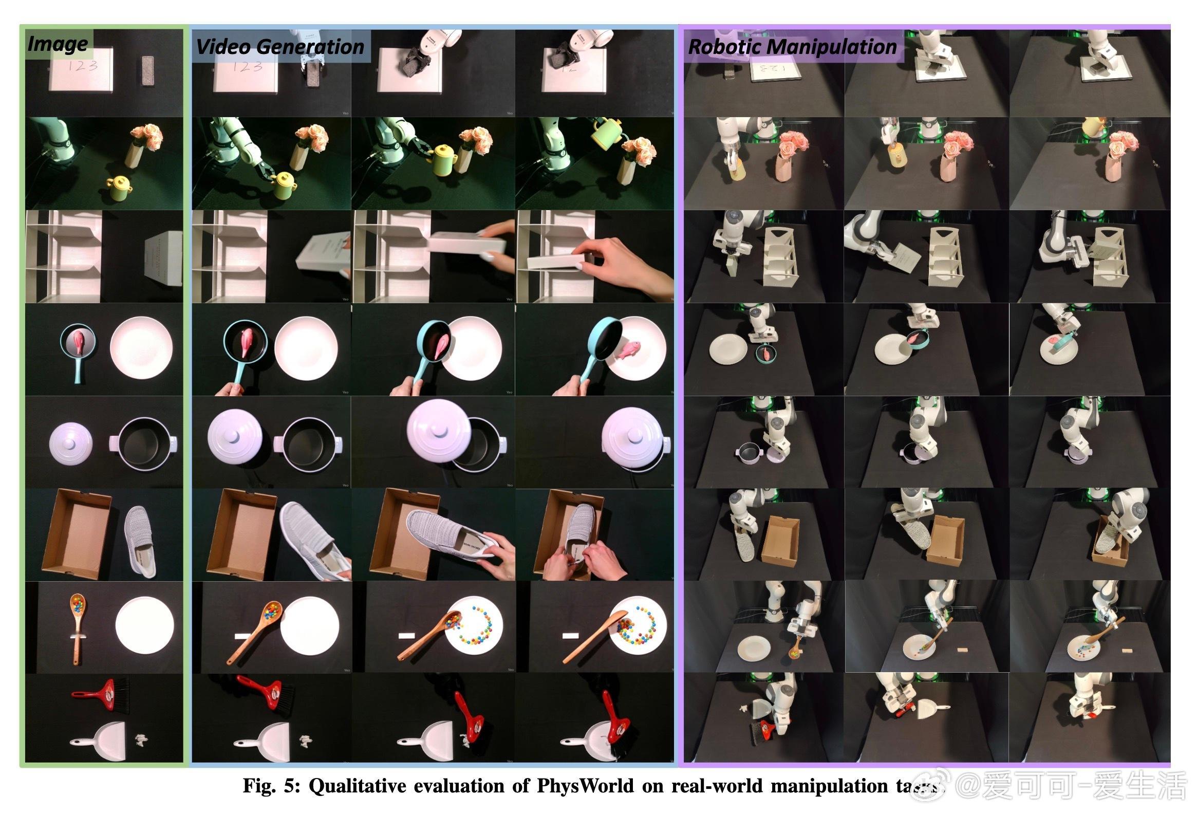 [RO]《Robot Learning from a Physical World Model》J Mao, S He, H Wu, Y You... [Google DeepMind & USC] (2025) 本文提出一种融合视频生成与物理场景重建的机器人零样本学习新框架,开辟机器人自主操控新路径。传统视频生成模型虽能根据图像和语言指令合成逼真示范视频,但直接将像素运动映射为机器人动作忽视了物理约束,导致操作误差大。PhysWorld创新性地从单张RGB-D图像和任务指令出发,先生成任务条件视频,再从视频构建4D时空物理场景,包括纹理网格、质量摩擦等物理属性,利用视觉语言模型辅助赋予物理参数,并通过碰撞优化确保场景物理合理。更关键的是,团队设计了基于物理世界模型的“对象中心残差强化学习”策略,聚焦对象运动轨迹作为学习目标,绕开了生成视频中常见的手部幻觉问题。该策略结合基线抓取与路径规划动作,学习残差修正,显著提升了策略收敛速度与鲁棒性,实现了无需真实机器人示范数据的零样本泛化操作。实验证明,PhysWorld在多样化真实任务(如倒番茄、放书入架、浇花等)中成功率达82%,较现有纯视觉追踪方法提升15%以上,有效减少抓取失败和运动追踪误差。通过对比多款视频生成模型,研究指出高质量、任务一致的视频生成是实现精确操控的关键。这项工作不仅打开了机器人学习利用大规模互联网视频生成模型的新思路,也为物理模拟与视觉生成的深度融合树立了标杆。未来,PhysWorld有望推动机器人自主适应复杂物理环境,摆脱昂贵示范采集限制,加速智能机器人在实际生活场景中的落地应用。详细内容请见:arxiv.org/abs/2511.07416
