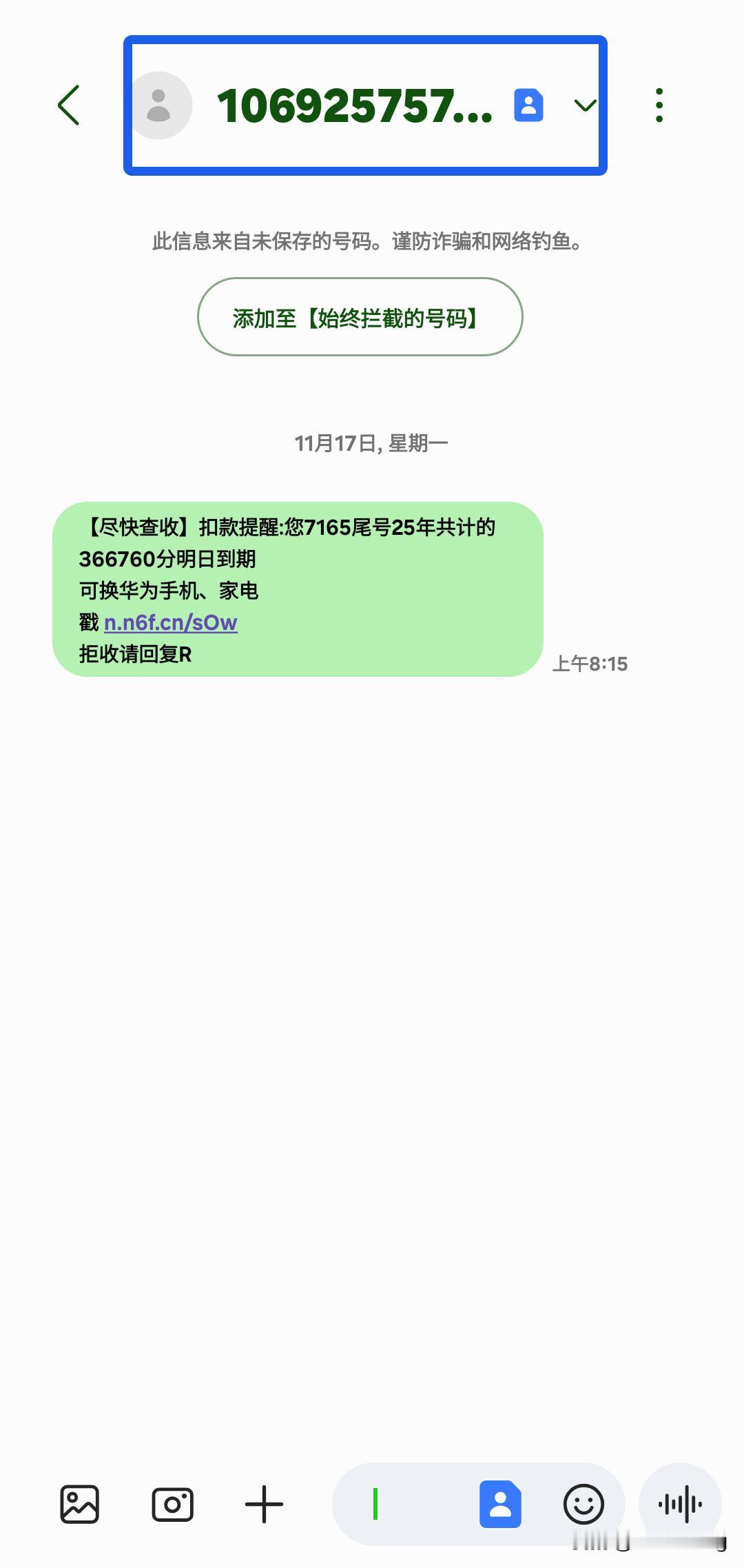 (更新骗子也要过年) 这个手机号居然把我的手机号都搞错了,这肯定是一个诈骗的信息,而且是一个群发的诈骗信息,大家千万要注意这个信息。如果你们碰到了这些所谓的兑换华为手机的这些信息,千万不要点进去,因为很有可能把你的银行卡! 还有卡里的钱彻底吞没,这其实是最简单却最行之有效的诈骗手段,那就是撒网捞大鱼。撒网群体是不特定群体。