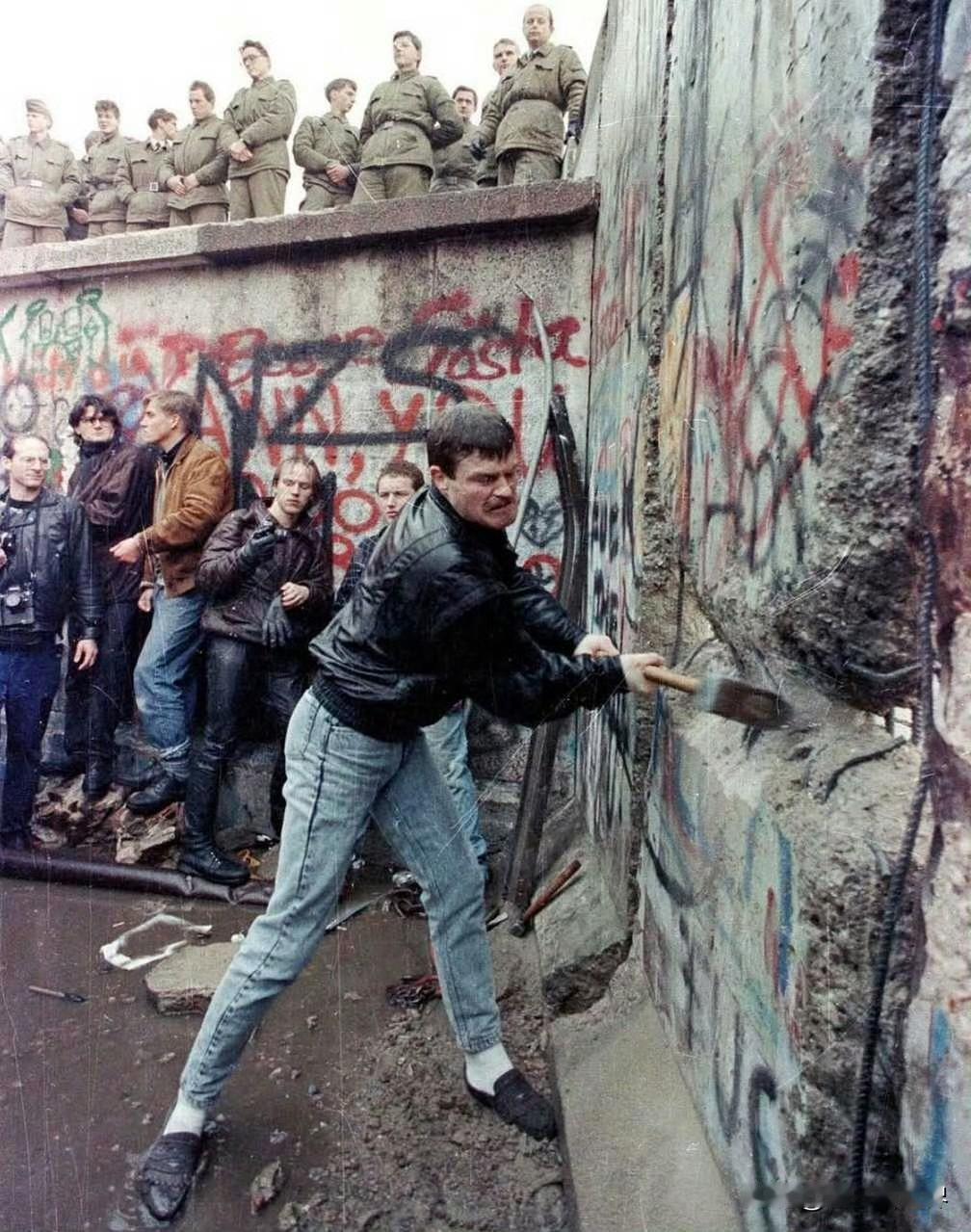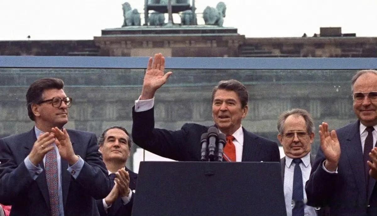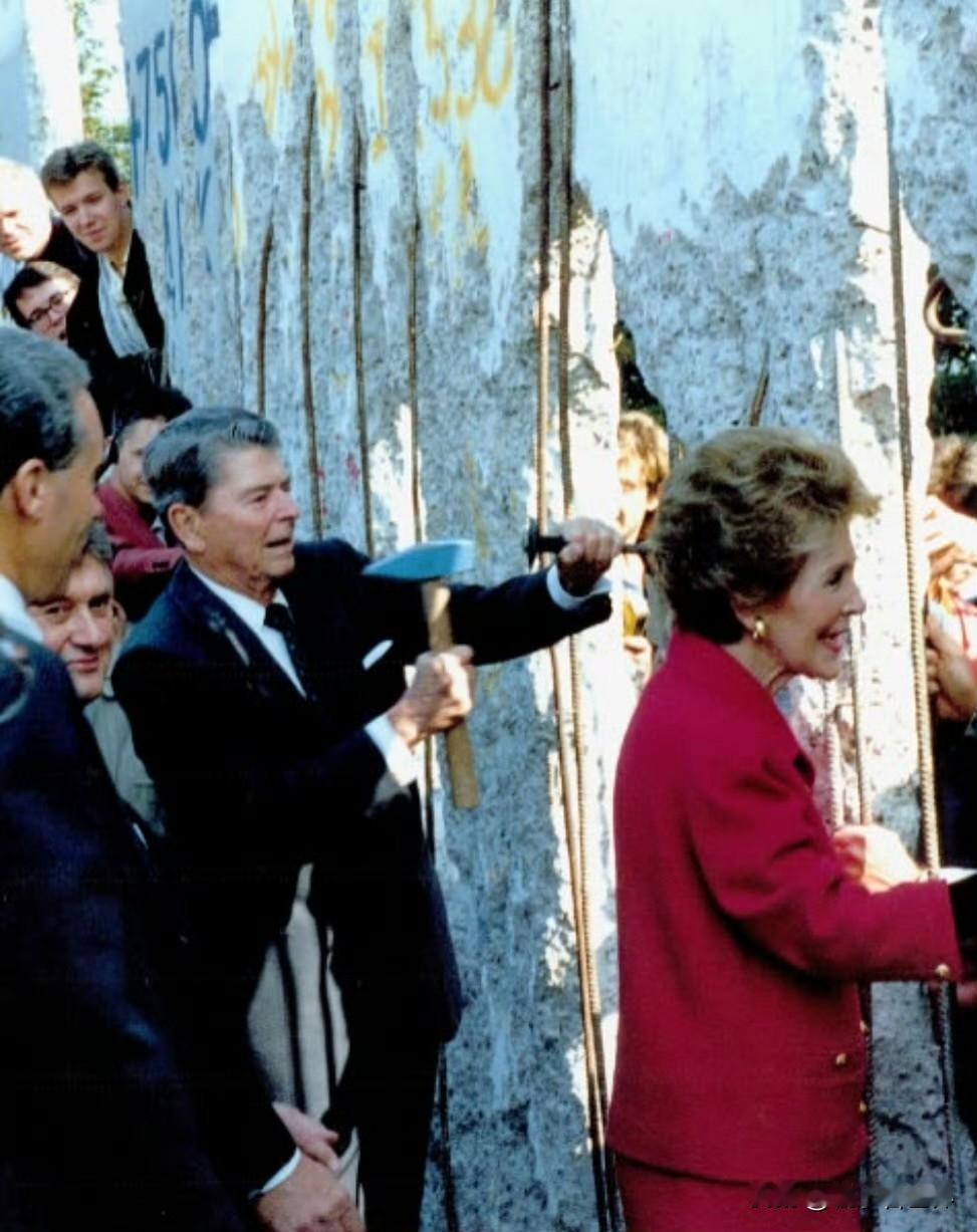 1987年,里根在勃兰登堡门前高呼“戈尔巴乔夫先生,拆掉这面墙!”,那场景极为震撼,充分展现出他对两德统一的热切呼吁。 柏林墙本就是冷战的标志,无情地割裂着德国人民。 实际上,柏林墙早在1989年便已拆除,但德国人心中的那道“柏林墙”至今仍未倒下。 1991年,卸任总统的里根携夫人再度来到德国,在柏林墙前举起锤子和凿子,现场民众欢呼鼓掌。