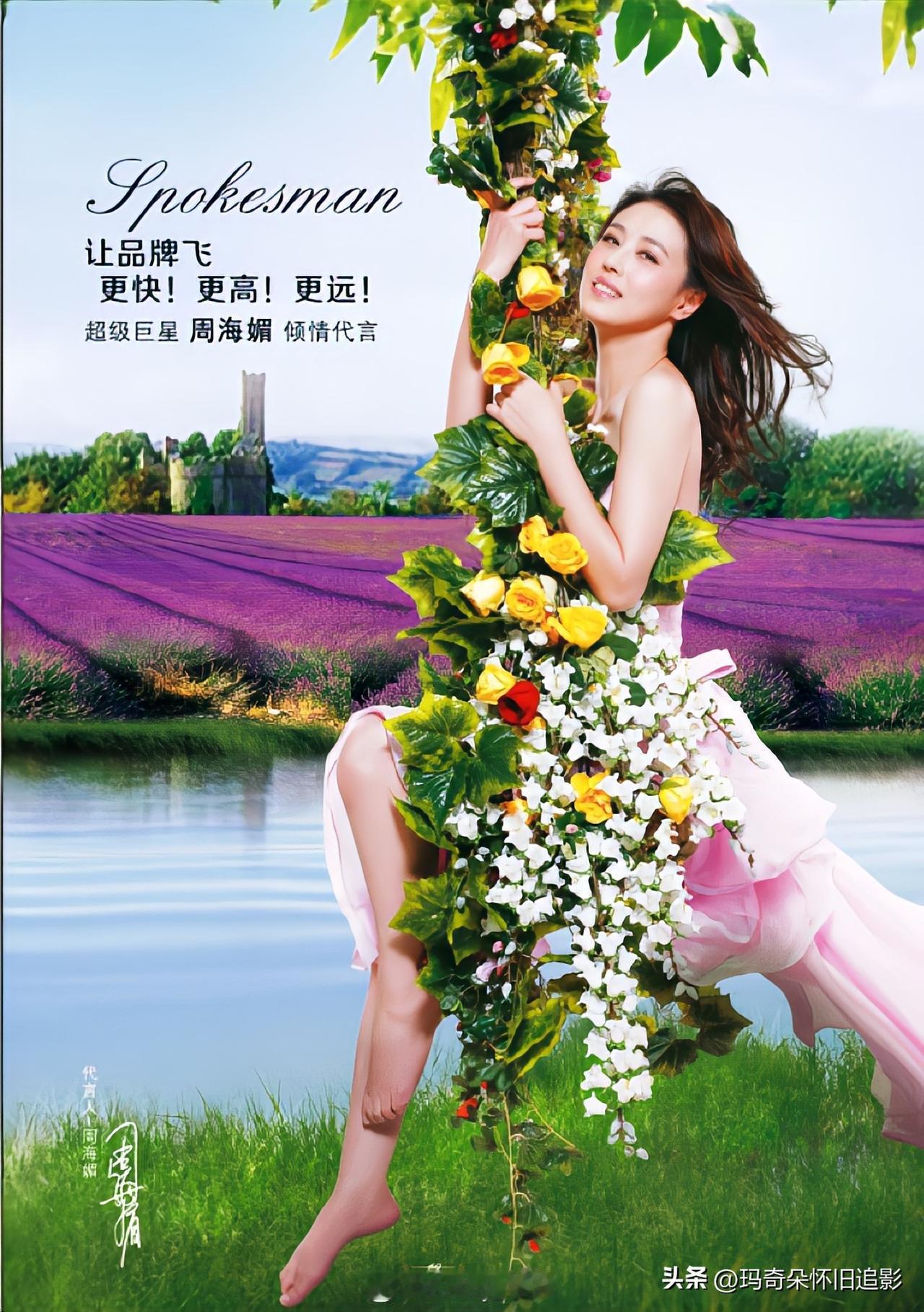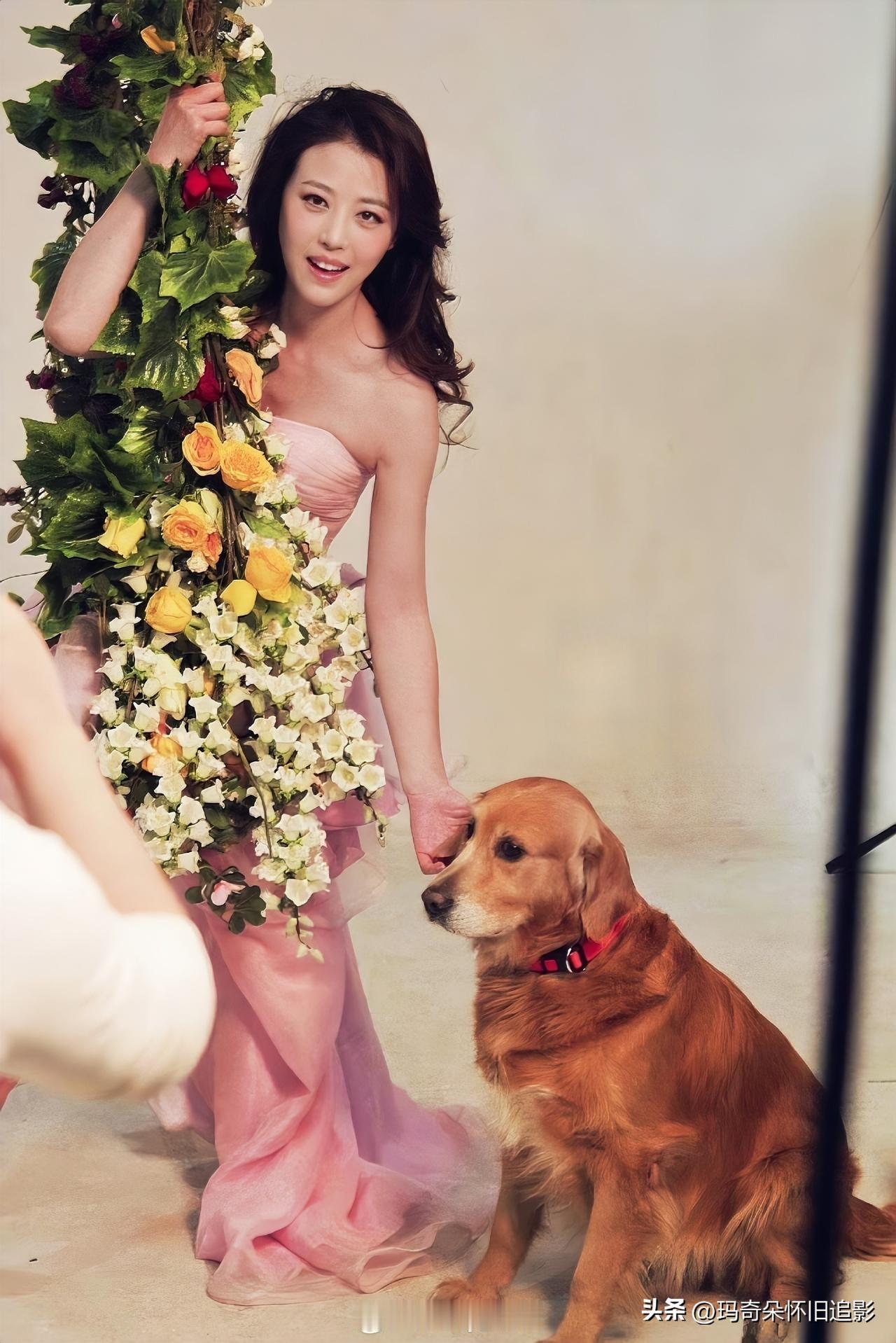 【🌺周海媚×花海暴击!】 藤蔓缠裙摆 风掀粉纱裙 赤脚蹭过春 金毛凑过来蹭她手 这明媚感 是岁月追着宠的模样✨