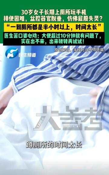 “悲剧还是发生了!”河南郑州,一女子长期上厕所时玩手机,一蹲就是半个小时,仿佛屁股失灵了一样,一点感觉都没有,不依靠药物的话一个星期都排不出来!女子去医院检查,被诊断为盆腔器官脱垂。医生:超过10分钟就有问题了! 手机揣兜里,厕所才敢去,如今这话成了不少人的真实写照。 可在河南郑州,30岁的运营专员李娜怎么也没想到,这个每天都在重复的小习惯,会让她直面一张沉重的诊断书。 李娜的工作节奏,用“连轴转”形容毫不为过,早会接需求、中午改方案、晚上盯数据,唯一能暂时脱离工作漩涡的地方,就是公司那间带锁的卫生间。 从三年前开始,她养成了蹲厕必带手机的习惯:关上门,点开短视频刷到停不下来。 回复完私域消息再刷会儿购物软件,等起身时双腿早已发麻,看一眼时间,最少也过了半小时。 只有这十几二十分钟,没人催报表,不用回消息,是真的放松,而身体的抗议最初很微弱。 半年前,李娜发现蹲久了站起来时,下身会有轻微坠胀感,她以为是穿紧身裤的缘故。 后来每次蹲厕后,膝盖和小腿会发麻很久,她又归咎于“久坐血液循环差”,从没往心里去。 直到两个月前,排便成了难题,蹲在马桶上半小时毫无便意,即便有感觉也排不顺畅,最严重的一次,整整一周没排便,最后只能靠泻药缓解。 更让她坐立难安的是,下身坠胀感越来越明显,走路时总觉得有东西“往下坠”。 在丈夫的陪同下,李娜走进了河南省人民医院妇科诊室。 当医生说出“盆腔器官脱垂”时,她愣了足足半分钟,我没生孩子,也没干重活,怎么会得这种病? 接诊医生张静用一个通俗的比喻解释,女性盆腔里的子宫、膀胱这些器官,全靠盆底肌像‘吊床’一样托着。 你每次蹲厕半小时,腹压会一直居高不下,就像有人在扯这张‘吊床’,时间长了弹性肯定变差,托不住器官就会往下掉。 更让她揪心的是,治疗需要每天做盆底肌康复训练,至少坚持半年,辛辣、油腻食物全要忌口,连她最爱的火锅都得暂时告别。 回家后,李娜试着改掉带手机上厕所的习惯,可刚关上门就下意识摸口袋,手指空着就浑身不自在,有两次甚至中途跑出来拿手机。 丈夫看不下去,干脆把卫生间门口的挂钩上挂了个小篮子,手机放这儿,出来再看又不会丢。 就这样硬扛了两周,她才慢慢适应“无手机蹲厕”,排便时长也从半小时压缩到七八分钟。 蹲厕超过10分钟,腹压会比站立时高出3倍,直接压迫盆底肌和直肠; 其实守护盆底健康并不复杂。 医生给出了一套“三步护腰法”:首先是“手机隔离”,上厕所前把手机放在客厅或卫生间外,从源头避免分心。 其次是“时长管控”,设定10分钟闹钟,到点不管排没排完都先起身,避免硬耗。 健康从不是“出问题再补救”的选择题,而是藏在每个日常细节里的必答题。 快节奏的生活里,我们总想着“挤时间”,却忘了给身体留一点专注的空隙。 蹲厕时放下手机,不是牺牲“放松时间”,而是给健康留份保障。 当我们学会在蹲厕时倾听身体的声音,在忙碌中关照身体的需求,才能真正把健康融入日常,让生活节奏与身体需求达成最美的平衡。