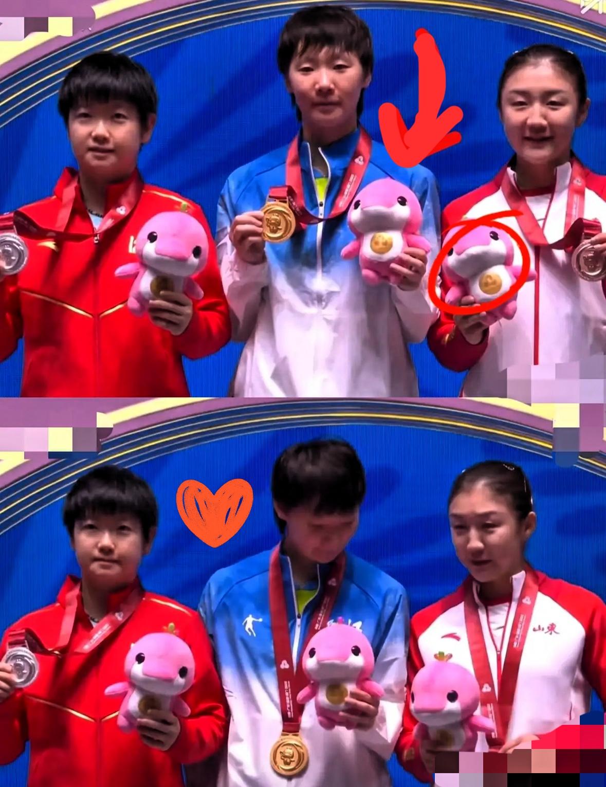 王曼昱和孙颖莎、陈梦的大合照, 有一处很细节的地方, 发现了吗?她们三个人面向镜头拍照的时候,手势不一样! 孙颖莎、王曼昱、陈梦同框封神,颜值和气场直接拉满,但你绝对没注意到她们的手势玄机!莎莎和曼昱整齐划一,都是右手握奖牌、左手抱吉祥物,默契到像复制粘贴。 唯独陈梦反着来,左手拿奖牌、右手抱玩偶,妥妥的“个人习惯杀”! 这小差异非但不违和,反而更显真实——顶尖赛场上她们是并肩作战的队友,私下里却是各有个性的女孩。 该说不说,三姐妹拍的这张照片真的很美,感觉又回到了从前。