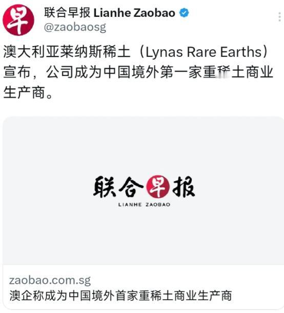 澳洲没想到自己花重金挖走中国稀土团队,以为能终结这个稀土霸权,结果却发现中国早就留了三张底牌。   2025年5月,澳大利亚莱纳斯公司在马来西亚工厂高调宣布产出氧化镝,纯度99.95%的消息让西方媒体集体沸腾,直呼“打破中国稀土垄断”。   莱纳斯此次实现氧化镝提纯,核心支撑是其从中国引进的技术团队。   澳大利亚以三倍薪水、全家移民福利为条件,吸引了一批在赣州、包头稀土工厂工作十余年的工程师加盟,这些工程师携带了稀土分离提纯的核心技术。澳洲媒体披露,仅人才引进成本就投入近2亿美元,叠加马来西亚工厂的改造升级费用,总投入超过数十亿美元。   在澳大利亚方面看来,高纯度氧化镝的产出,意味着中国占据全球90%稀土精炼产能的格局将被打破,所谓“稀土霸权”即将终结。   然而,实际情况显示,澳大利亚的这一突破仅触及稀土产业的基础环节,距离撼动中国稀土产业地位仍有显著差距。中国在稀土领域已提前布局,形成三张关键“底牌”,每一张都精准针对全球稀土产业“去中国化”进程中的核心痛点。     第一张“底牌”在于产能稳定性的绝对优势,这是澳大利亚短期内无法突破的壁垒。莱纳斯马来西亚工厂虽实现技术投产,但长期存在环保争议。   2023年2月,马来西亚政府曾以工厂排放放射性废料为由,要求其暂停分离与浸出工序,当地居民多次举标语抗议,称工厂废水已渗入地下水系统。   此次为实现高纯度氧化镝产出,莱纳斯简化了废料处理流程,仅半个月后,环保组织便向马来西亚政府提交举报材料,马来西亚环境部已明确表示将重新审查工厂运营牌照。   对比之下,中国稀土产业在环保与产能稳定性上已建立成熟体系。赣州稀土矿区已广泛应用“原地浸矿”技术,通过特制浸取剂沿钻孔注入地下,直接溶解稀土元素,无需开山毁林,且稀土回收率可达95%以上,即便浸取液中稀土浓度低至0.03g/L,仍能实现有效回收,该技术在全球范围内处于领先地位。   更重要的是,中国稀土矿山与冶炼工厂多布局于国内,从开采到精炼的全流程可实现自主管控。北方稀土、厦门钨业等行业龙头企业,单家企业的稀土分离年产能便超过全球其他国家产能总和,完全不存在供应中断风险。   当莱纳斯仍在与马来西亚政府协商环保审查事宜时,中国生产的氧化镝已通过产业链稳定供应至新能源汽车制造企业,两者在产能稳定性与供应效率上的差距显著。   第二张“底牌”是技术专利形成的壁垒,澳大利亚难以绕开。莱纳斯声称自身突破中国技术壁垒,但行业内数据显示,其提纯氧化镝采用的溶剂萃取法,核心配方仍基于中国十余年前的技术框架,仅对提纯试剂进行了小幅调整。   当前中国稀土技术专利已完成多轮迭代,2025年国家稀土技术研究院单年度便申请数十项相关专利。以北方稀土的“复合光催化剂专利”为例,该技术可将稀土分离纯度稳定在99.99%以上,同时实现矿石伴生贵金属的回收,直接降低20%的生产升本。   高盛发布的报告显示,全球稀土相关专利中,中国占比达70%,仅在分离提纯领域就拥有37项独有技术,美国企业的专利数量不足中国的五分之一。   中国已建立“技术流失黑名单”制度,对涉及技术外泄的人员实施终身禁业,这进一步限制了澳大利亚获取核心技术的渠道,莱纳斯若想实现技术升级,面临巨大障碍。   第三张“底牌”体现在市场主导权上,这是澳大利亚无法撼动的核心优势。稀土产业的价值不仅在于提纯,更在于下游应用市场的消化能力。   2025年全球稀土消费数据显示,中国占比达80%,新能源汽车、风电设备、电子芯片等主要稀土应用领域,多数产能集中在中国。   以莱纳斯产出的氧化镝为例,其主要用途是制造高性能钕铁硼磁体,而全球98%的钕铁硼磁体由中国企业生产,特斯拉上海工厂电机磁体的供应商为宁波韵升,该企业的稀土原料全部来自中国国内稀土集团。   莱纳斯曾尝试将氧化镝销往西方企业,但西方最大永磁体厂年产能仅数千吨,无法消化其产出规模,最终仍需与中国企业洽谈采购合作。更关键的是,中国具备稀土价格调控能力,2025年初包钢股份上调稀土精矿价格后,全球稀土原料价格同步上涨。   莱纳斯的生产成本本就比中国企业高30%,价格波动进一步削弱其市场竞争力。此前美澳曾签署85亿美元稀土合作协议,计划构建“西方稀土供应链”,但美国本土稀土矿开采需耗时29年,莱纳斯在德州的精炼厂预计2028年才能投产。   而中国在稀土回收技术上已取得突破,未来原生稀土需求可能进一步下降,澳大利亚构建“西方供应链”的计划面临时间与技术的双重挑战。