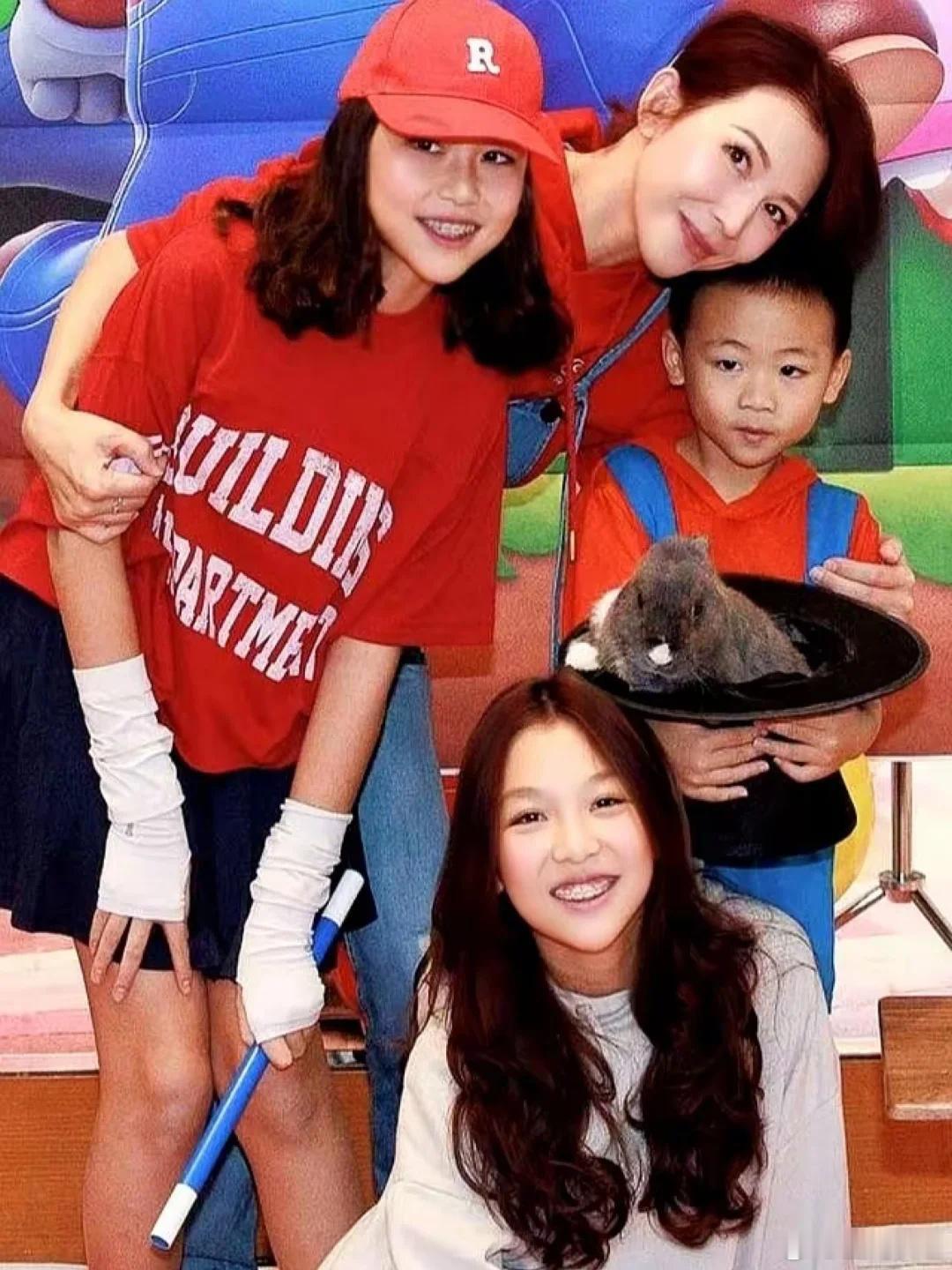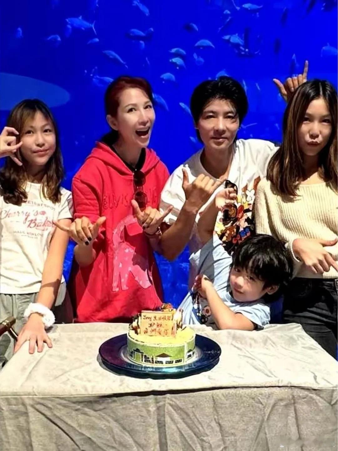 蔡少芬晒出一家五口为小儿子鱼蛋去香港海洋公园庆生的照片啦!大女儿张楚儿(14岁)身高已超过173cm。二女儿张信儿(12岁),腿长比例优越,母女三人同框被称“姐妹花”。